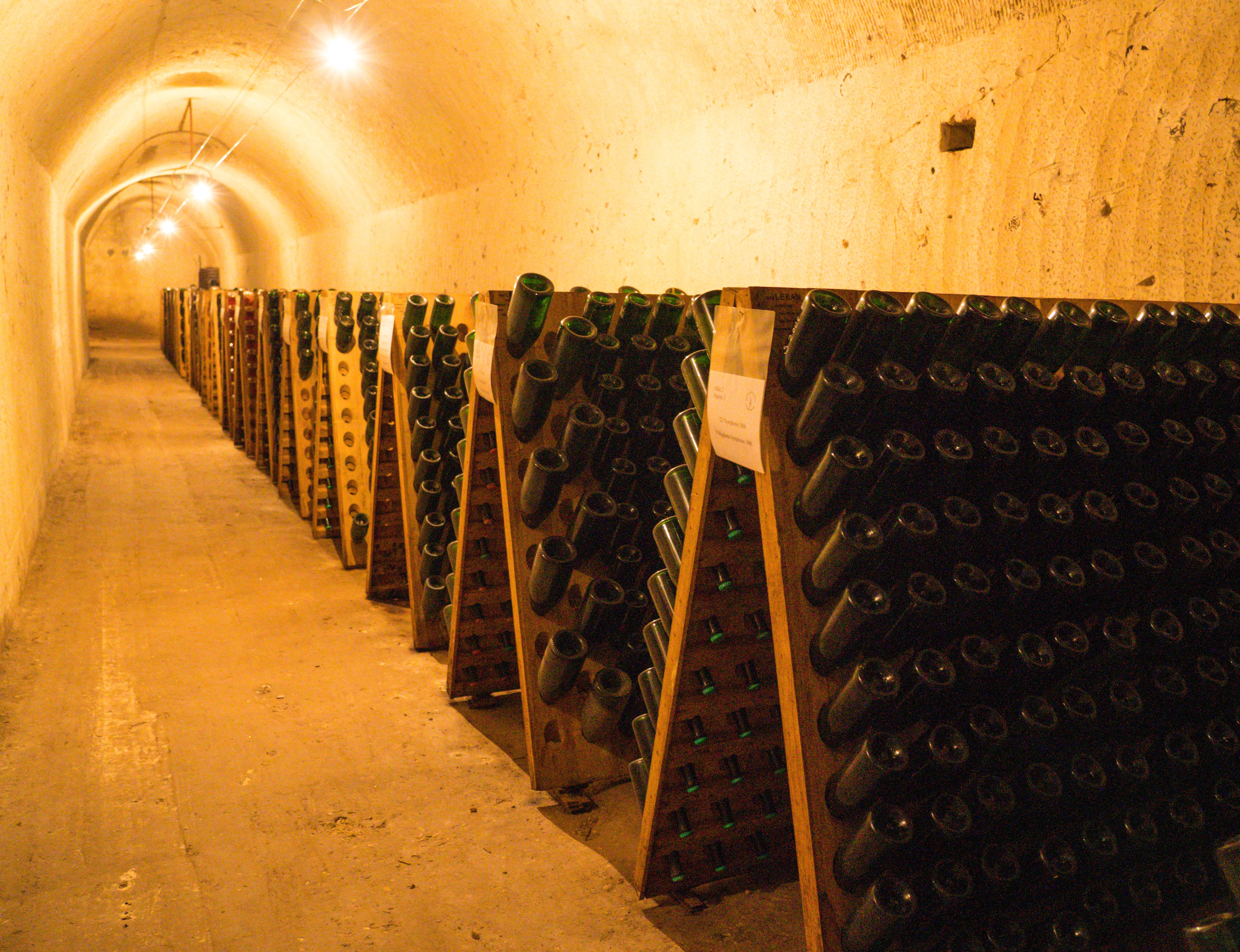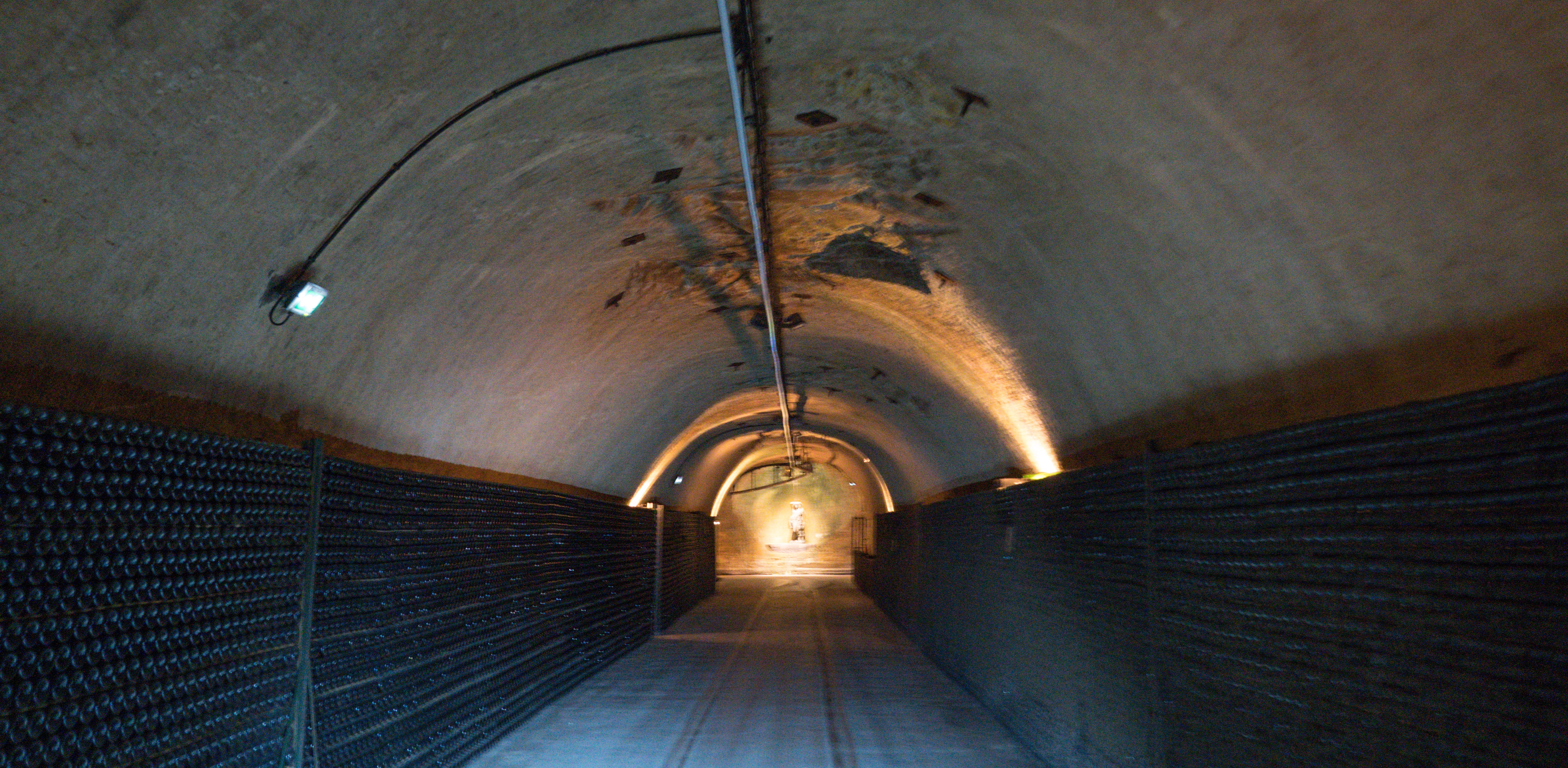 Mr A admiring some of the 18km of underground cellars full of champagne