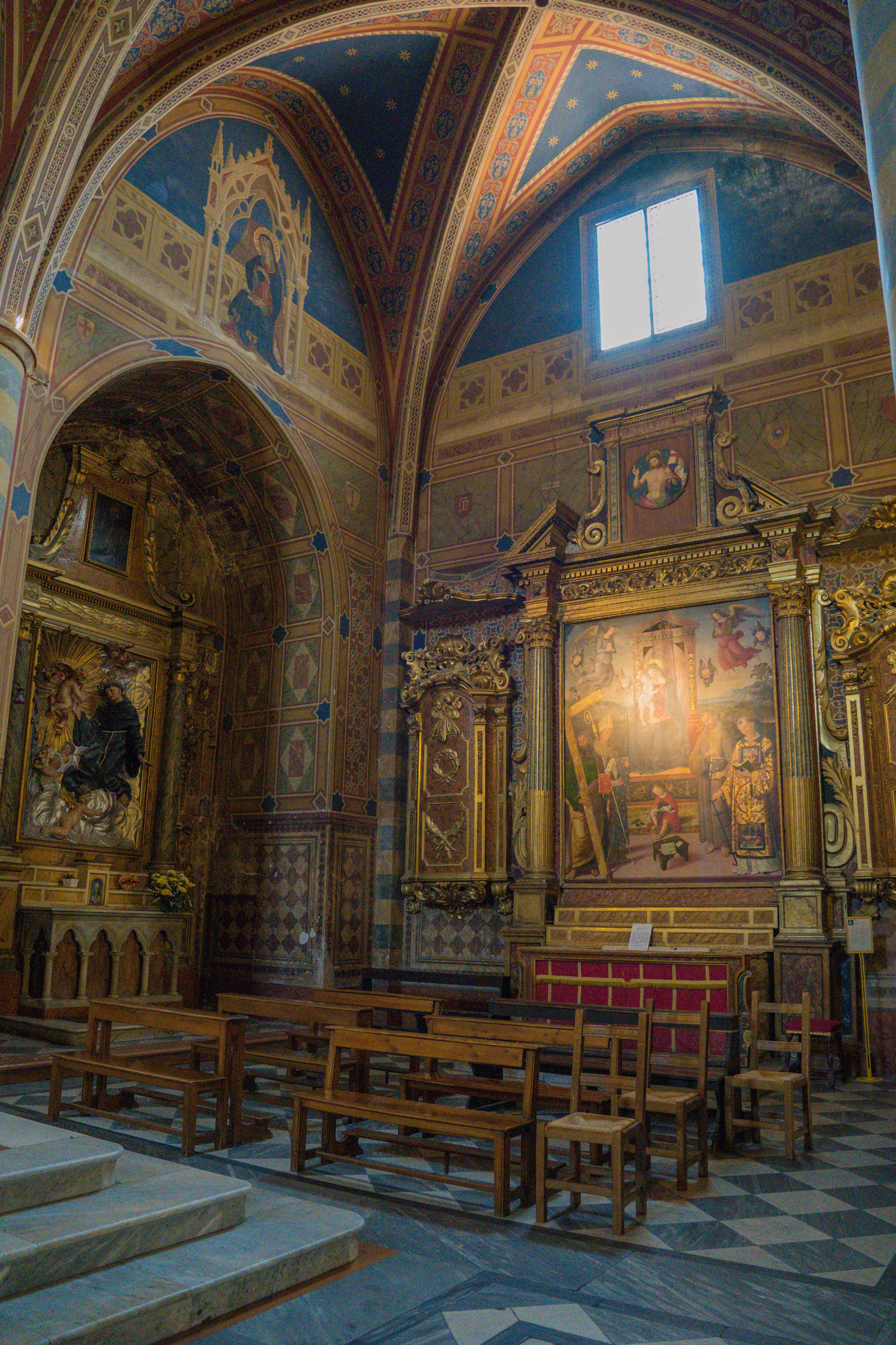 So we wandered back through the town, calling in for some wine tasting on the way through (three small glasses for €10), and popping our heads into the Chiesa di Saint Andrea, a church built in the 11th century, an example of Francisan architecture.