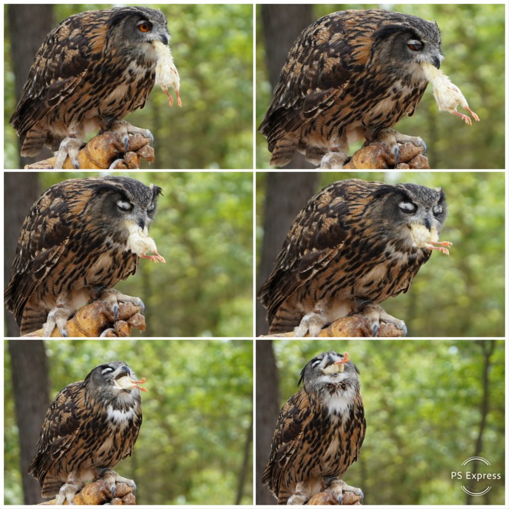 Owls eyes are not light sensitive – so if you shine a light into them the pupils will not change size…instead, when their pupils are large, they are seeing in macro, observing everything right in front of them. When their pupils shrink down, they are seeing things in the distance, like a pair of incredibly powerful binoculars. Eagle Owls can see a mouse move 8km (5 miles) away!