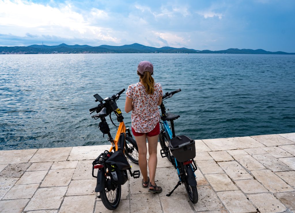 Our destination for the day was Zadar, a town on the coast about 160km north of Split. Once parked up at a very ordinary campground (basically crammed cheek by jowl in someone’s back garden with water access) we jumped on the bikes and cycled 10km into town.