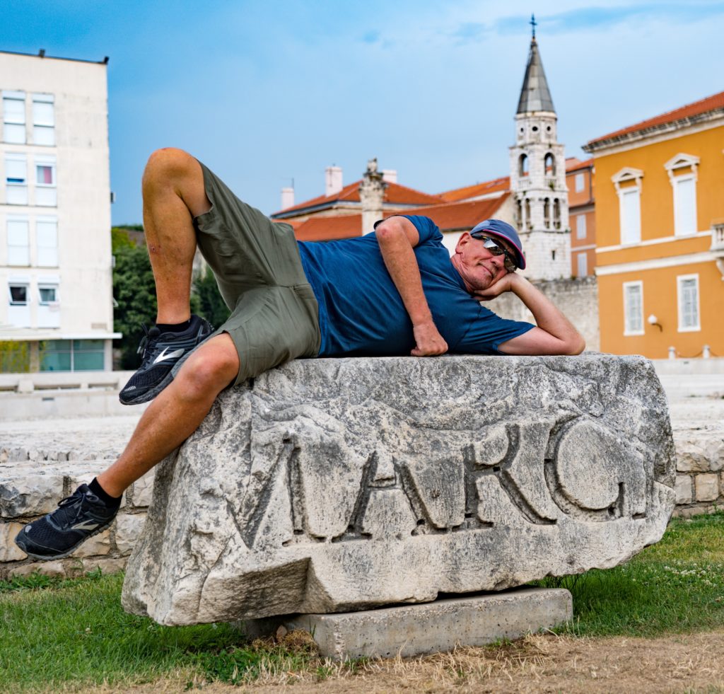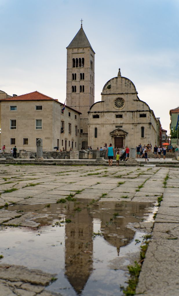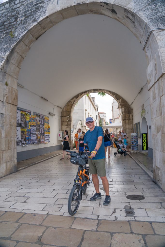 It was not a picturesque cycle, riding through derelict ports and long abandoned industrial areas, but before long we were riding across a bridge over the harbour and into the old town. Like many old towns we have visited, the streets are polished with centuries of feet, and Zadar old town is quite pretty. It was listed by UNESCO in their world heritage list in 2017.