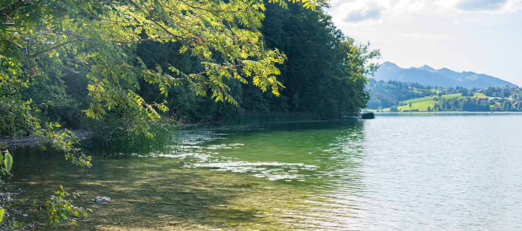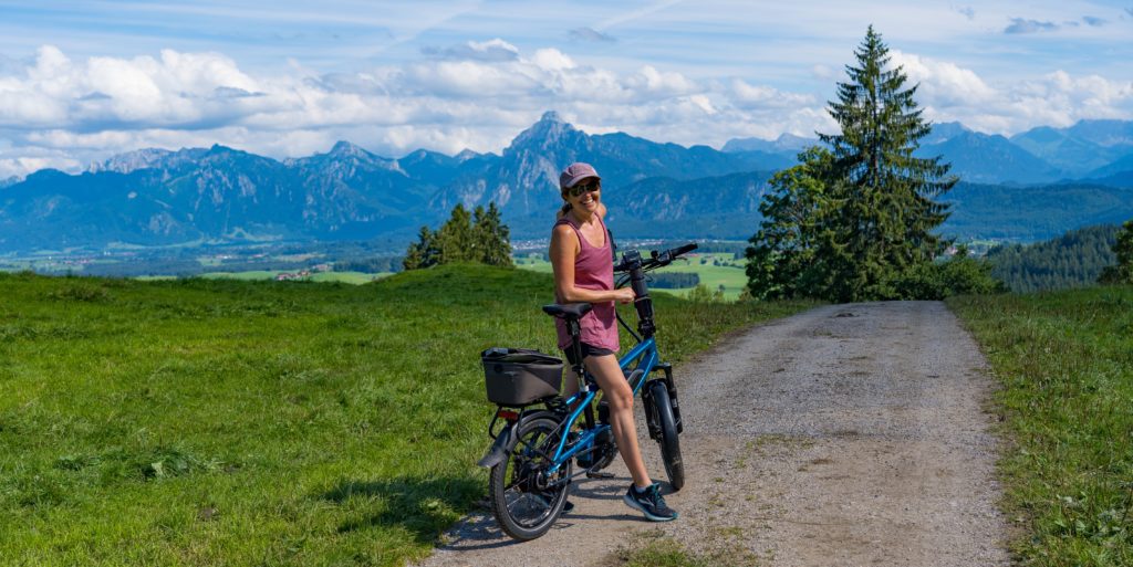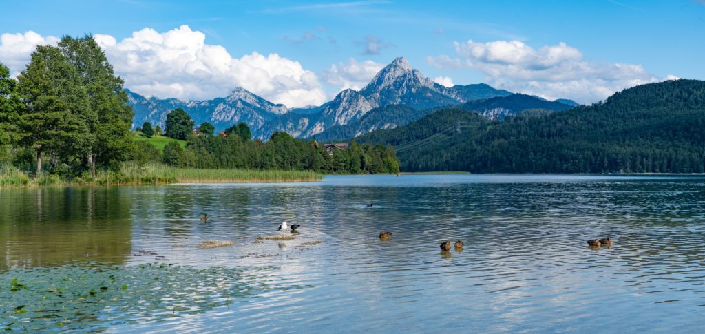We set off next towards Hopfensee, a large lake surrounded by villages and walking tracks, skirting the edge of the lake through the village of Füssen towards another lake, Weissensee. All tracks were off road, cutting through woodland, old farm tracks along fields, or purpose built alongside the busier roads, but felt really safe at all times. There were plenty of other cyclists around, big smiles on their faces, enjoying the sunshine, perfect temperature and stunning scenery after several days of rain and cooler temperatures.