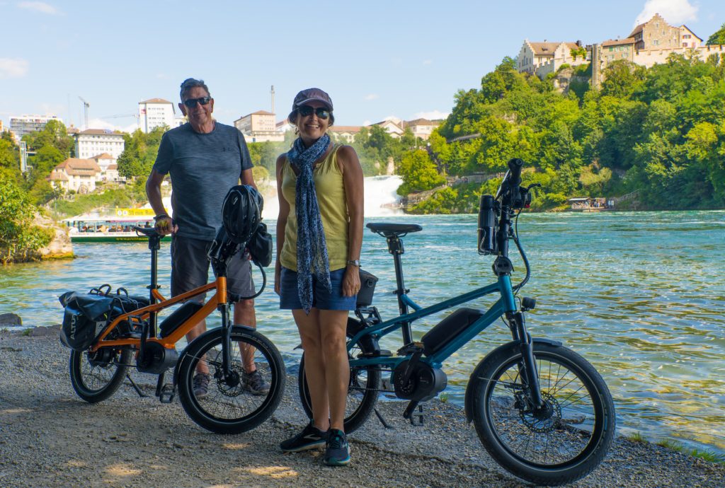 Laufen Castle behind us on the Zurich side of the river, dates back to the year 878