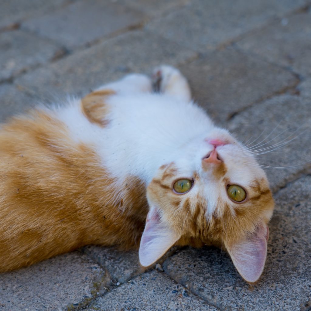 A little ginger kitten calls us over to give him strokes on our cycle past