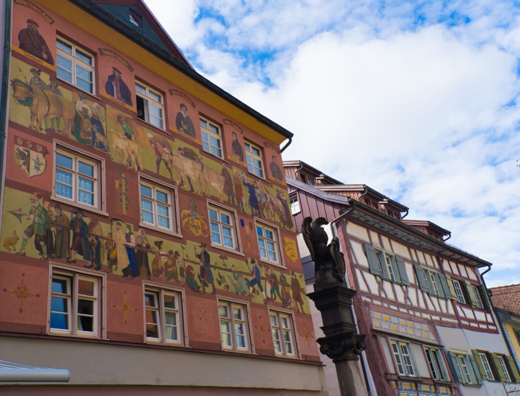 Claimed to be ‘one of the most scenically attractive streets in South Germany’ murals cover the front of many buildings, dating back to the 1700s