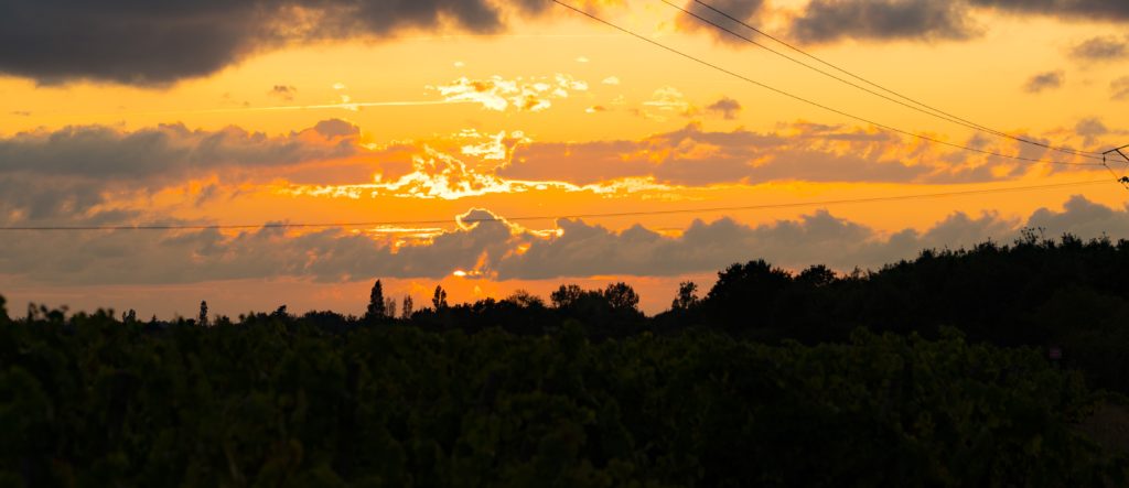 We purchased a couple of bottles of wine, both very reasonable (the Grolleau Gris at €3.80 and the Abouriou Grolleau at €3.40) and headed off to the vineyard for the night.
