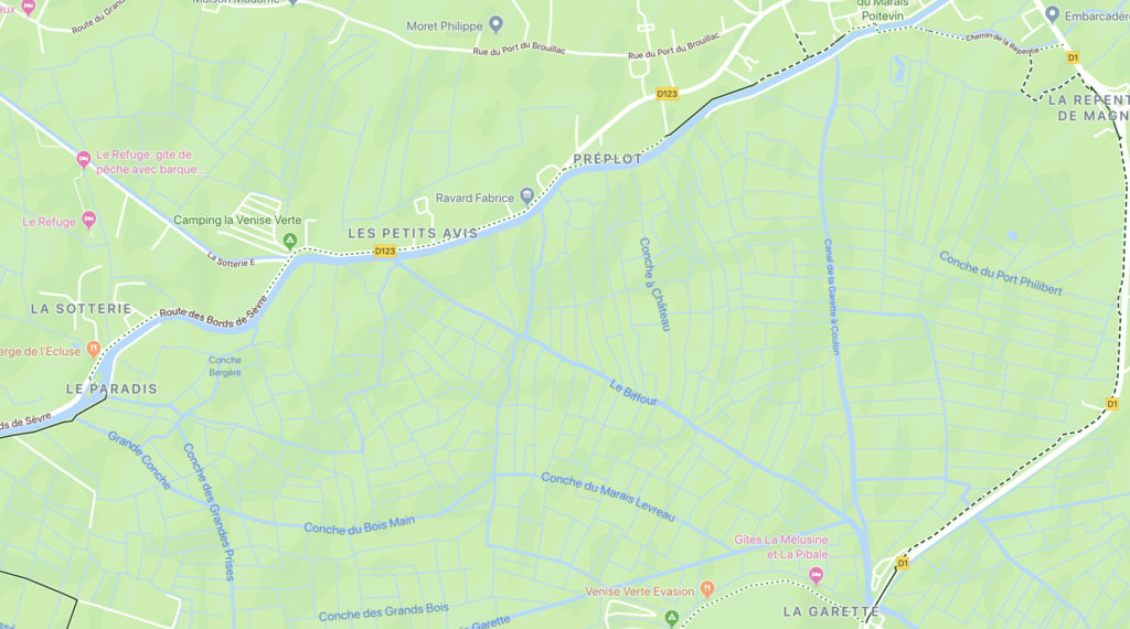 Looking at Google Maps you can see a web of waterways criss-crossing the countryside. The regional park stretches across 112,000 hectares all the way down to the coast, but we were here to explore the section around Coulon which comprises of two main areas – the dry marsh (which is used for agriculture) and the wet marsh (known as the ‘Green Venice’) which floods during winter. The park is important for migratory birds and rare wildlife such as the European otter and is France’s second largest wetland.