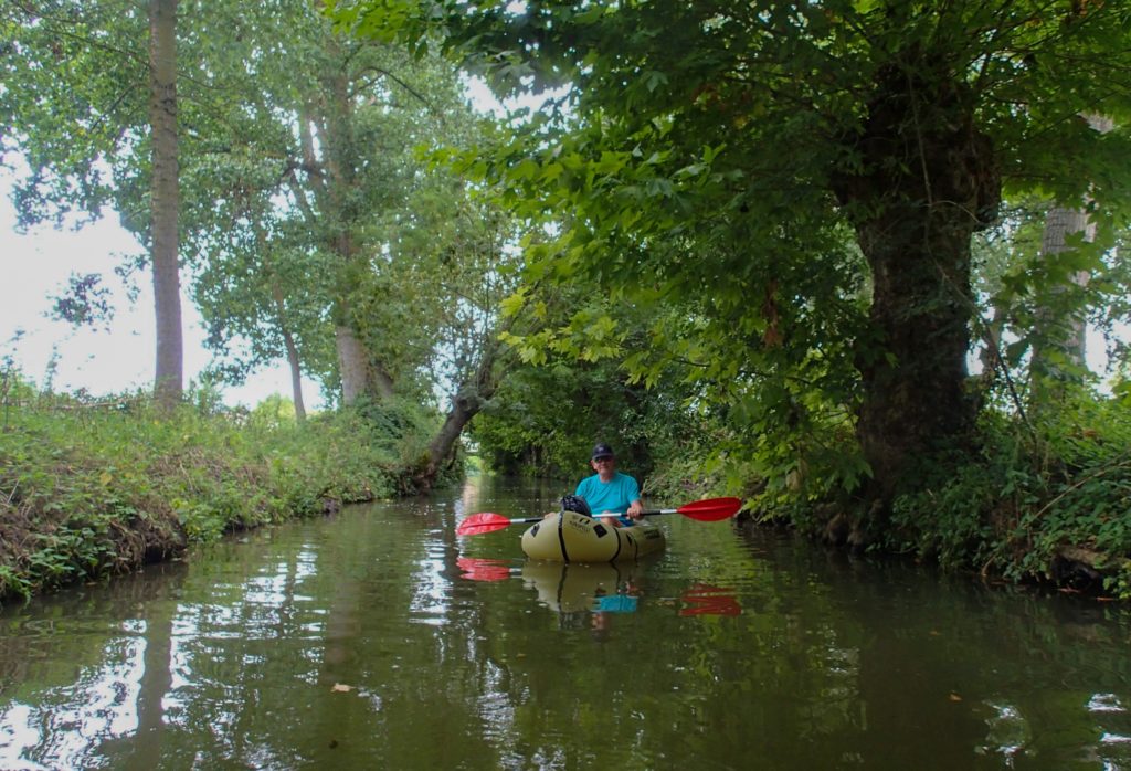 The following morning we decided it would be the ideal opportunity to inflate our pack rafts and head out for an explore by water. We launched from just in front of our campsite onto La Sevre Niortaise, the main waterway going through Coulon. But instead of heading into the throng of rowboats and tourists we turned right, and went into the quieter waters upstream, hoping to find some unsuspecting wildlife.