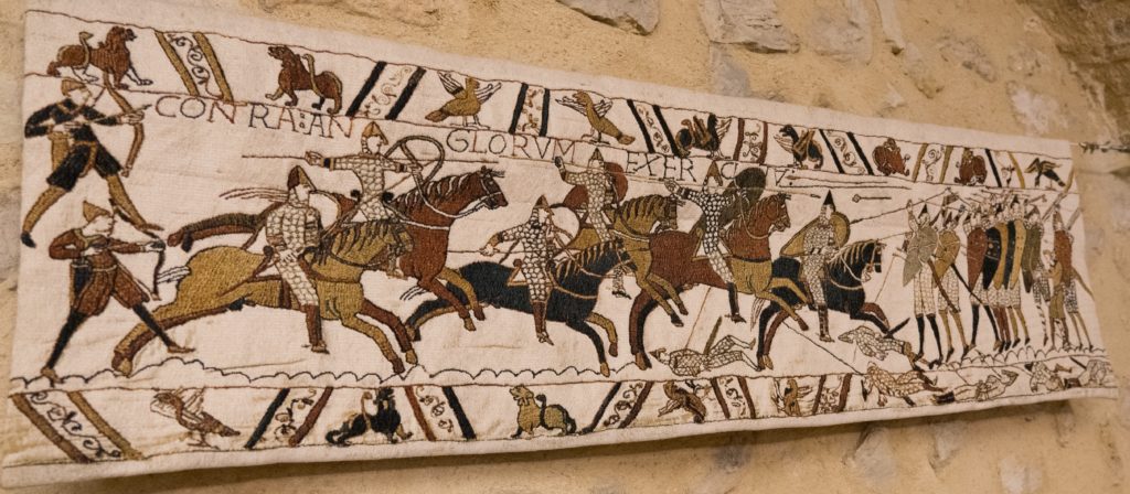So basically the tapestry was publicity to spread the word to the peasants in Normandy that England was theirs for the taking and depicting how powerful the Normans are. Most of the peasants couldn’t read or write, so pictures needed to tell a thousand words, and indeed they did. We can only assume there is some ‘fake’ news in the tapestry to make it a good story…after all, history is in the hands of the teller.
