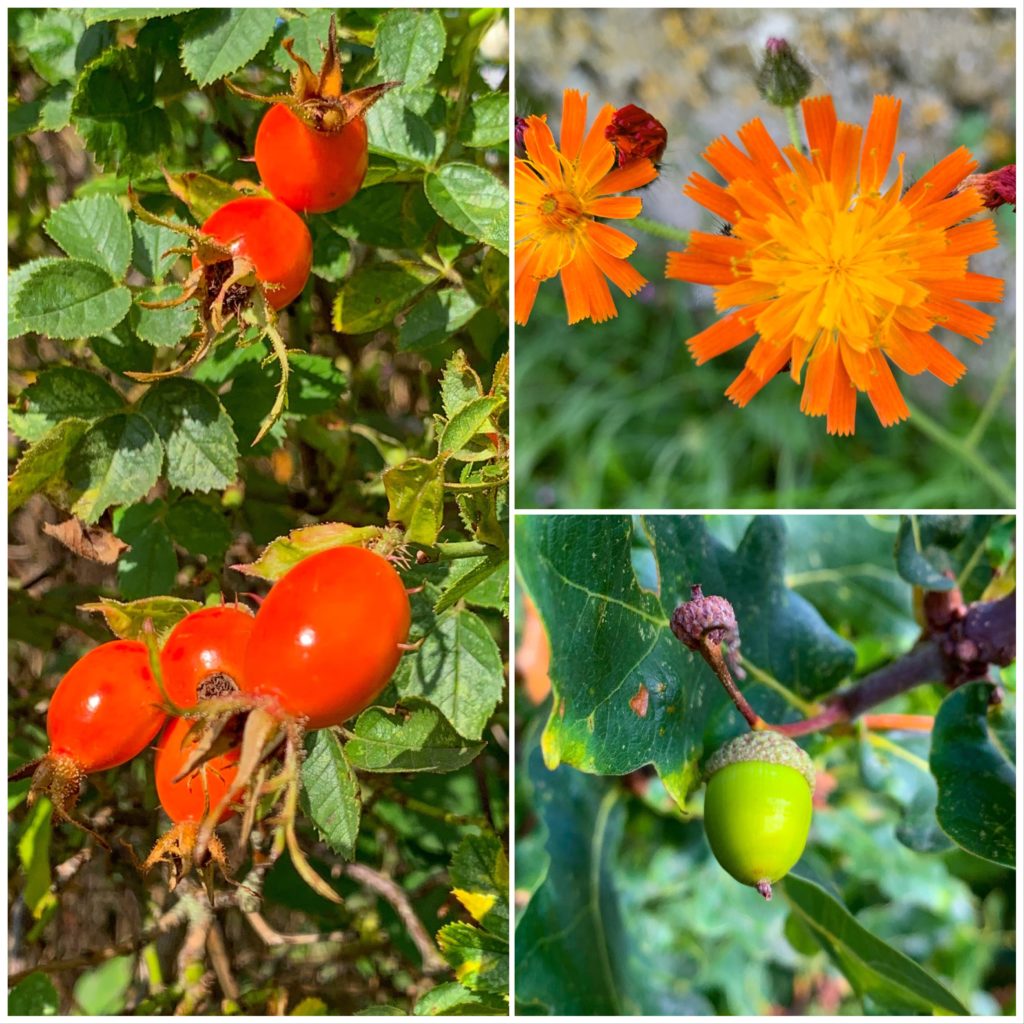 More autumnal colour – rose hips and acorns