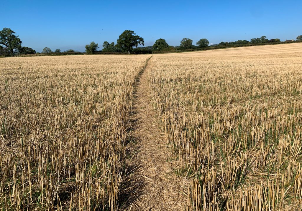 Our path winds through harvested fields