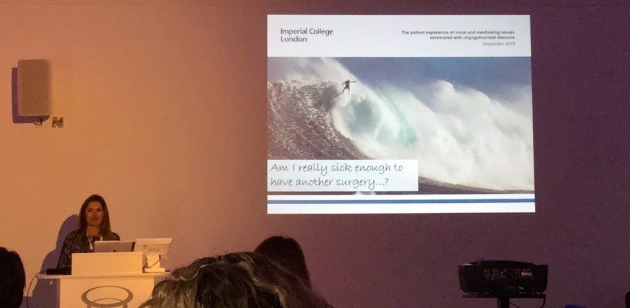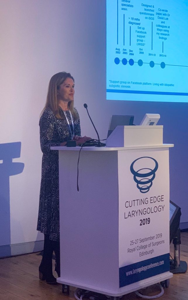 As I write this blog the lovely Mrs A is standing in front of a room full of super smart top surgeons and other health professionals from around the world at the “Cutting Edge Laryngology” conference in Edinburgh this week, presenting on how the rare disease she suffers from (idiopathic subglottic stenosis) has impacted her life, and how she has fought back.