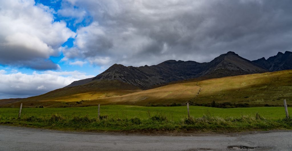 We arrived on the Isle of Skye via the road bridge that was opened in ‘95, and I could just hear my dad saying “Look Jill, look at that!”, as he nudged her in the ribs, seeing the soaring peaks of the island’s Cuillin range dropping down into the deep blue waters of the surrounding sea.