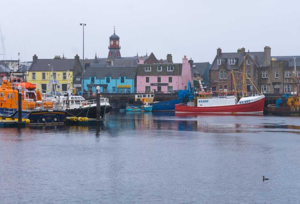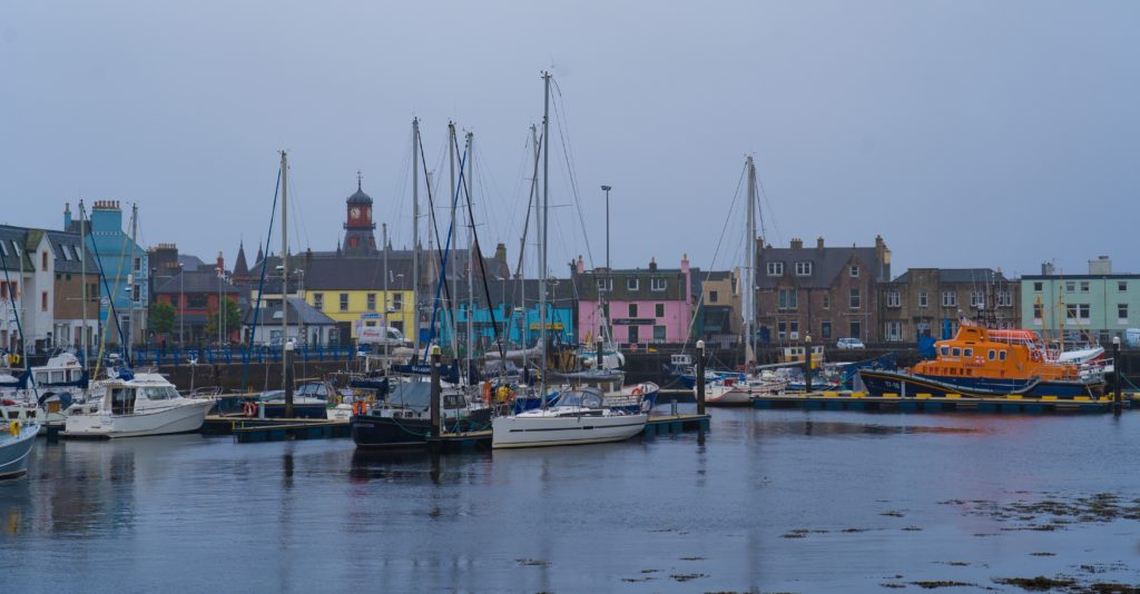 Our final day in the island of….well lets call it Lewis, although when we arrived in Stornaway this morning, the castle was called Lews Castle. the mystery continues. We have a mooch around the harbour in the drizzle, all rugged up and wondering where all the people are going as there’s not a single place open in town…except the church. Well its been a long time since I’ve witnessed this, people are dressed up in their Sunday best, three piece suits, ties – the lot, and going to a service of some kind. Ah well, each to their own. We make our way down to the ferry wharf and trundle Truffy on. He’s getting to be quite an experienced ferry traveller now!