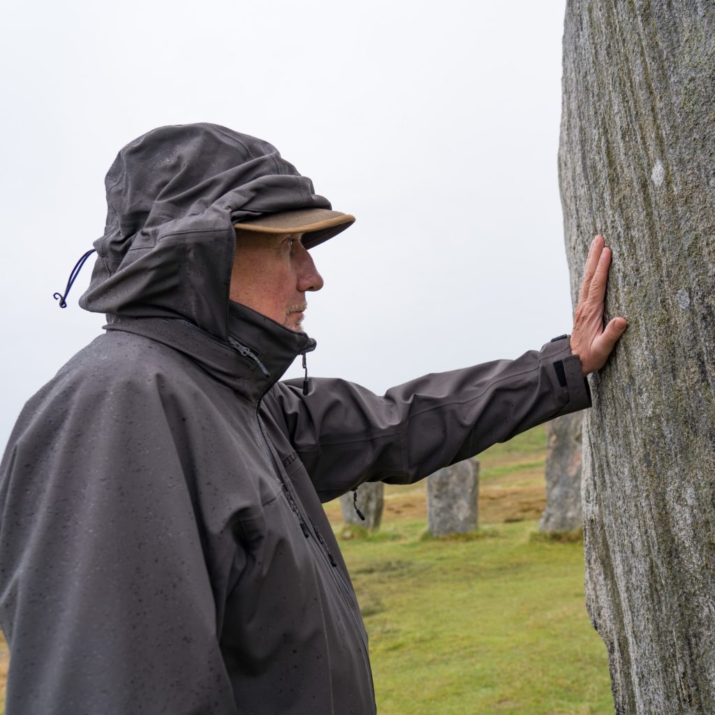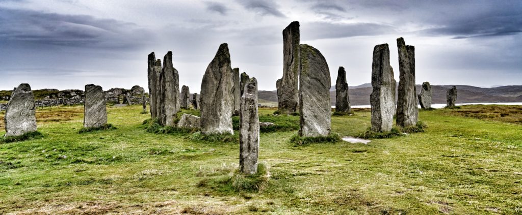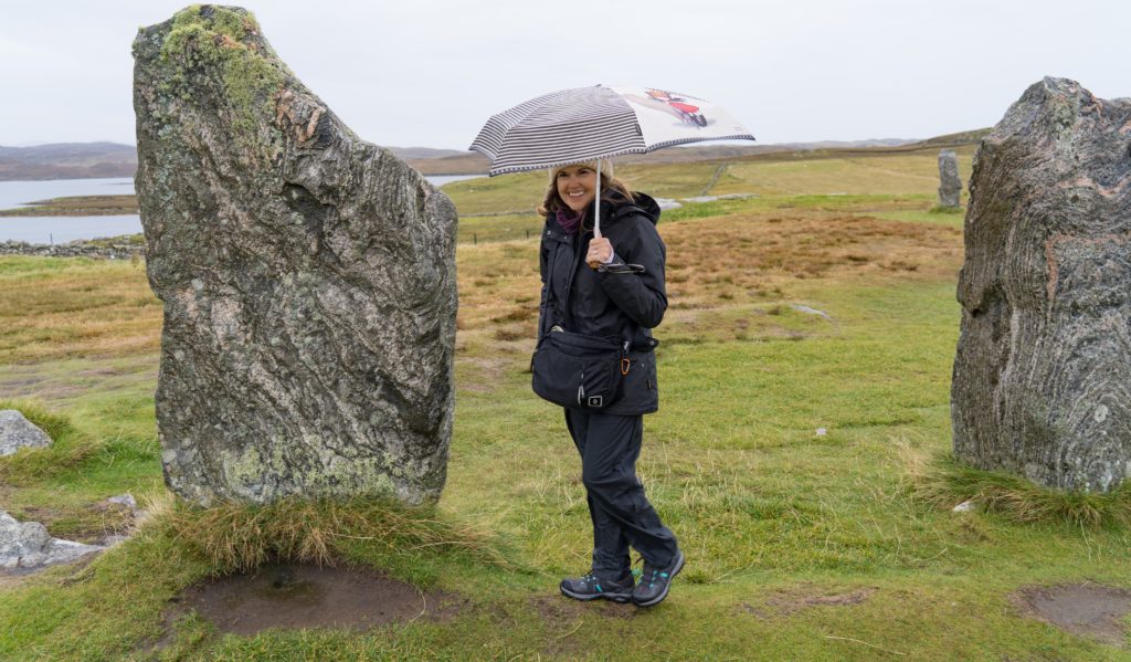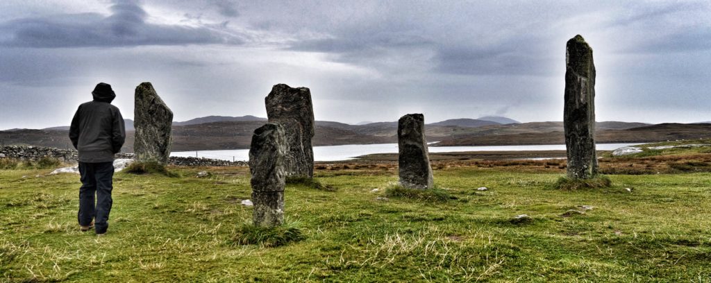 The edge of the bad weather that has been drenching the UK caught us, the rain came down and so we spent longer than usual in the car driving up through the island (islands?) to Lewis. I was keen to visit the standing stones at Calanais, or is it Callanish Standing Stones? They are variously named and spelled differently just to keep us visitors on our toes, even after we have worked out the whole Harris and Lewis thing. Anyway, another one of those mysteries I love, with archeologists mystified about the significance of the location and function of these other circles in the area. In fact this one isn’t even really a circle, but flat on one side. So for 5,000 years the people who have lived here have been trying to mislead and confuse…I like it.