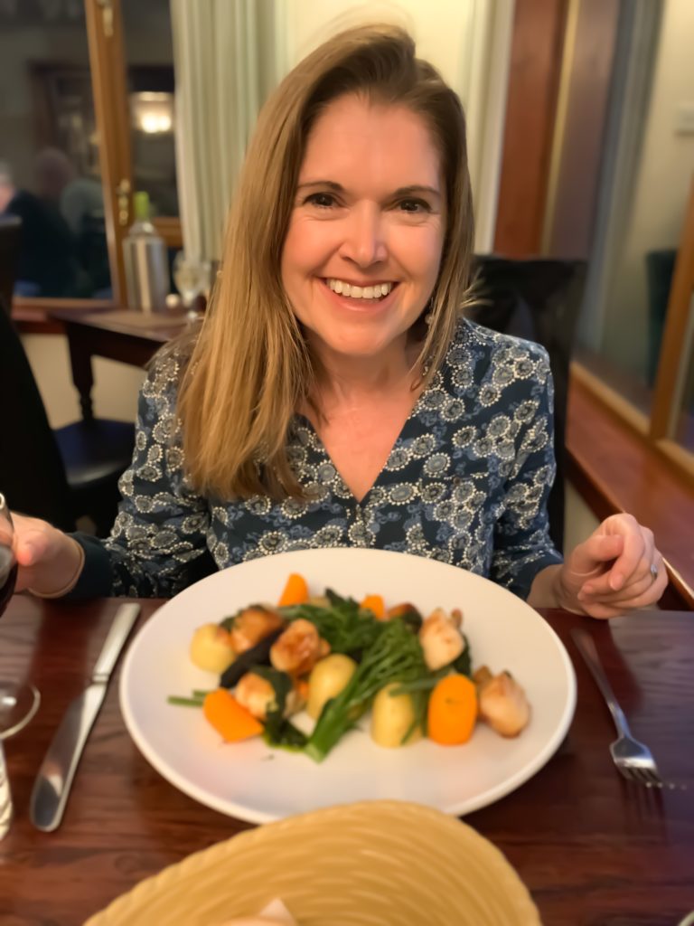 Well our dinner at the Harris Hotel was absolutely gorgeous, everything that had been missing on Skye. A friendly barmaid welcomed us, the atmosphere was cosy, and the food….scrumptious. After a quick perusal of the menu, with no conferring, we both as usual made exactly the same choices. Too much time together harmonising our tastes? Locally caught herring for entree, followed by the plumpest scallops I’ve ever seen, with locally grown veg that tasted like it had been dug up that afternoon. What a feast. Our first meal out since Edinburgh. We tried hard to eat out in Skye but nothing tempted.