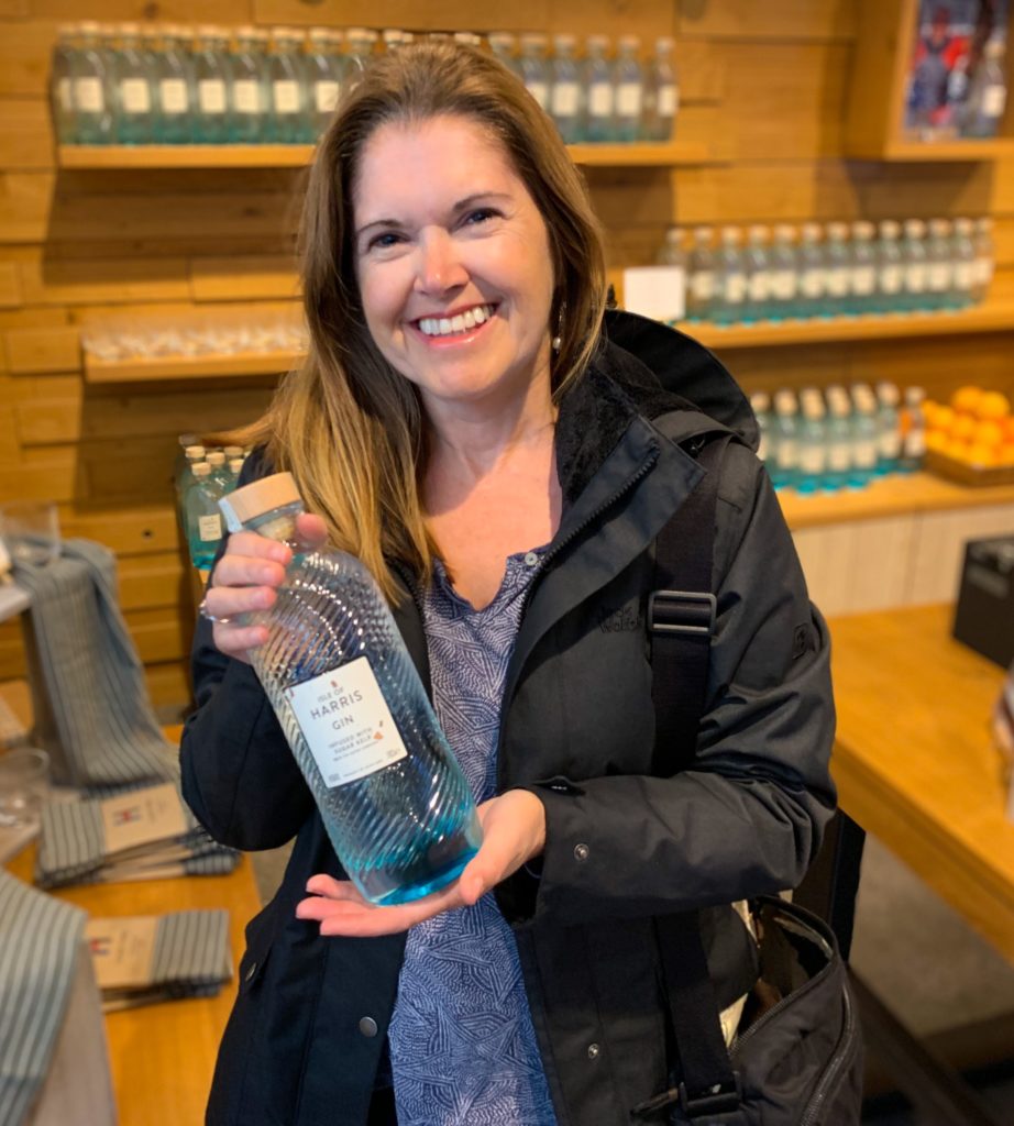But our first stop was metres from the ferry point, the Harris Distillery. This imposing looking building was made possible through the combination of EU grants and the backing of a Scots born ex CEO of Monsanto. His US$77 million payout might have helped. You would assume a distillery in Scotland produces whiskey…nope..its gin. Gin has made them profitable in these gin fuelled times. They are distilling whiskey, but its not available for sale yet. We loved the gin. Apparently its differentiator is the sugar kelp (yup, seaweed) infused in their copper gin still, and gathered by a virgin diver (poetic license) from the pristine waters around the island. Great to see a business like this doing well in such a geographically remote corner of the UK.