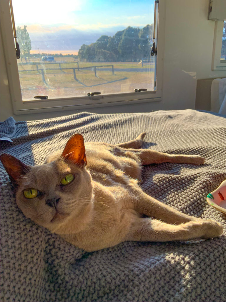 We headed inland to Braidwood and stayed there for the night at the showground, sheltering from the fierce wind and dust storms. It was cosy though in the van and it was lovely to spend the evening with Tassie all snuggled up with us.