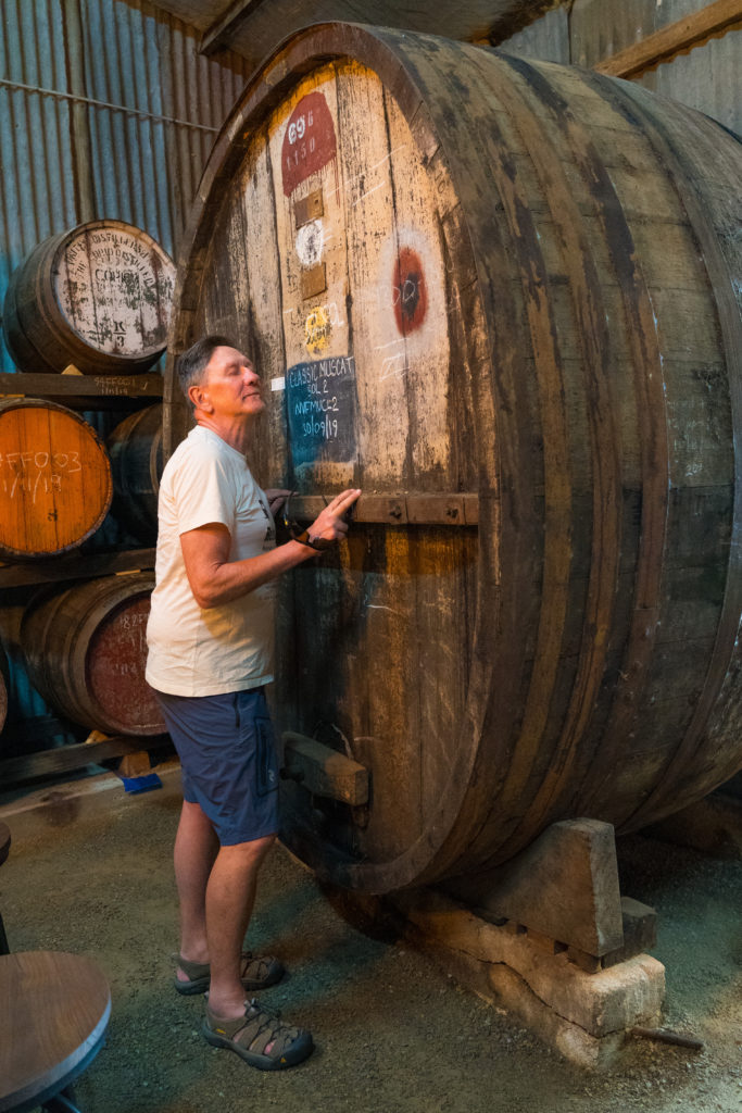 Upon spotting Catherine’s camera, Rob offered us a peek around their “back stage” and we jumped at the chance. They had massive 120 year old well seasoned barrels for their many and varied fortified wines, as well as new French oak ones