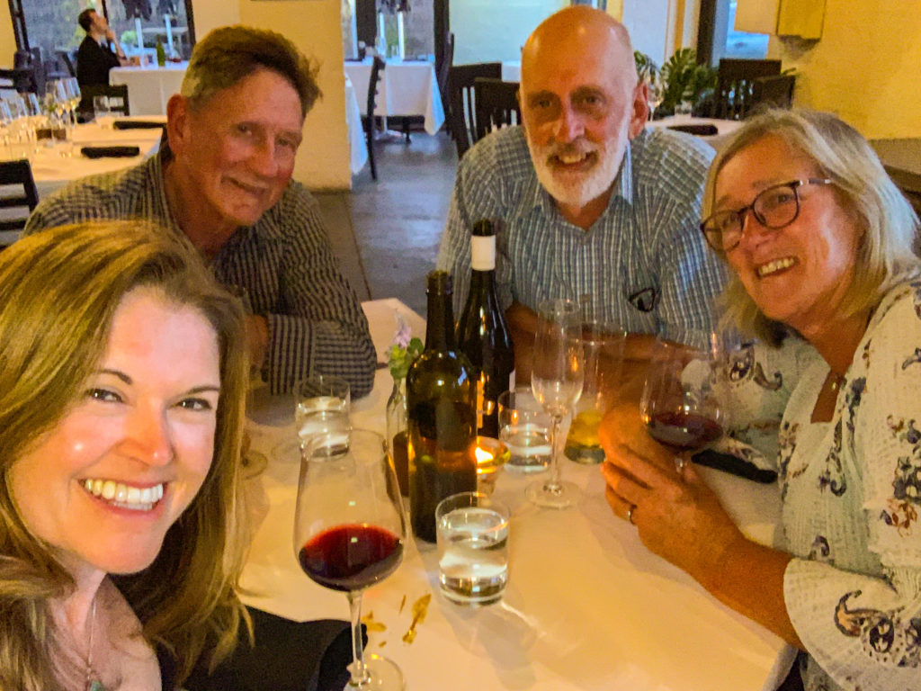 Dinner accompanied by a delicious Shiraz from Lightfoot & Sons, local winemakers