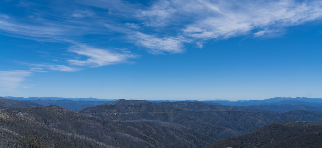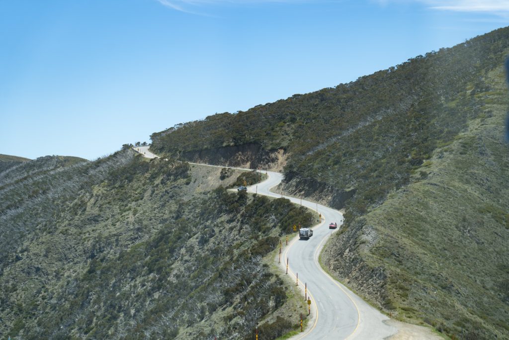It’s a road to be treated with respect, climbing to a pass at 1862 metres (just over 6,000 feet), even on a day with such perfect road conditions as we had. Blue skies stretched on forever over the forests of eucalyptus trees, which later changed to hardy snow gums as we toiled our way up the mountain.