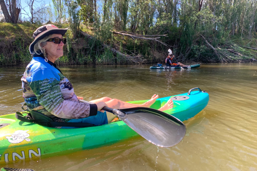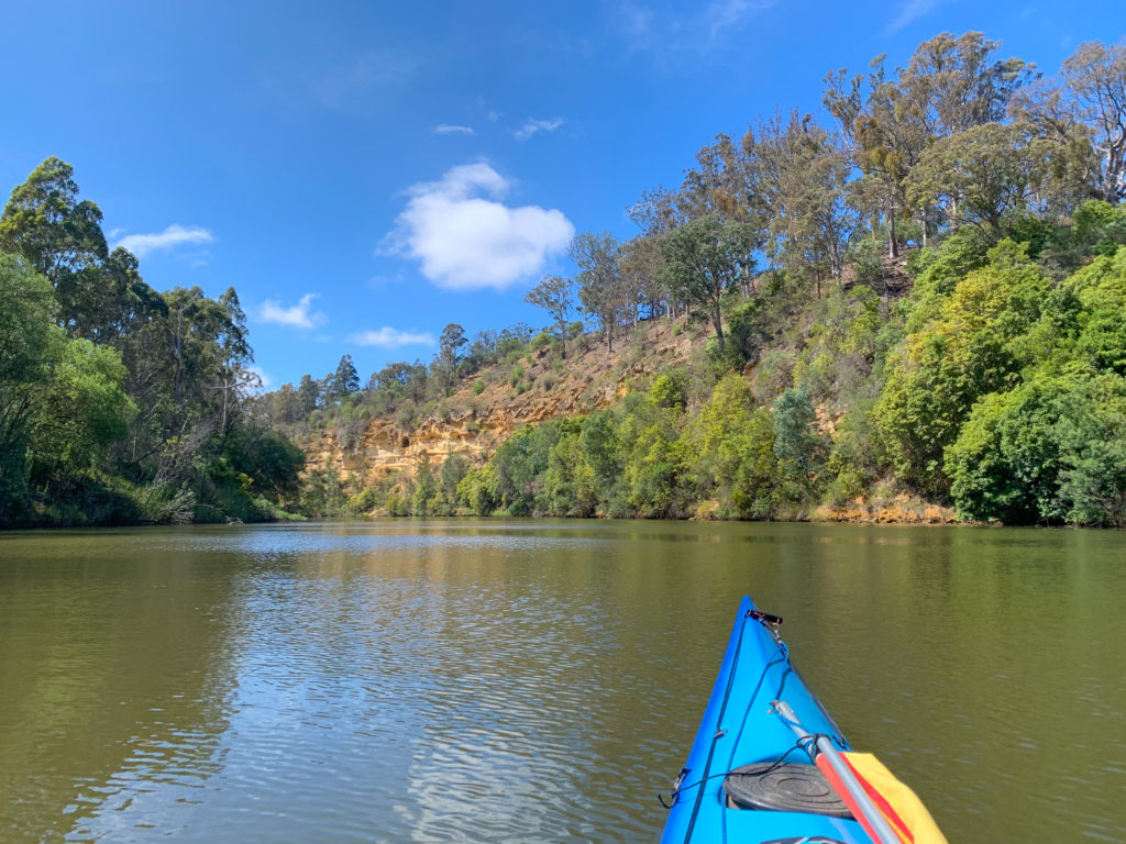 We had done very little paddling, or any other arm or core related exercise over the last few years, so certainly noticed the effort needed to propel even our sleek beast through the water. We spotted a nankeen kestrel cruising the water for lunch, and a kingfisher lurking along the river bank, given away by his azure wings and peach tummy feathers.