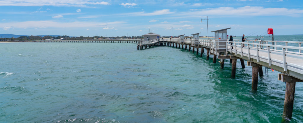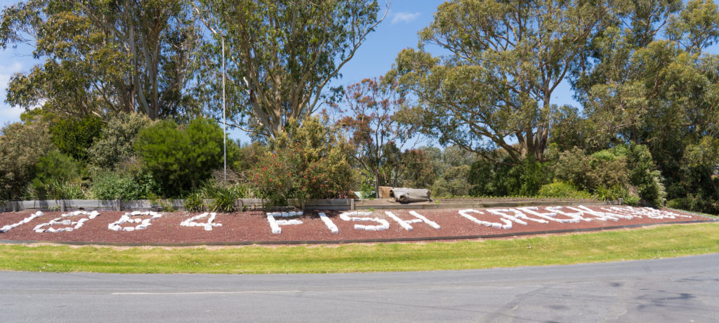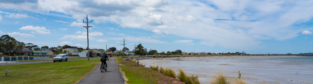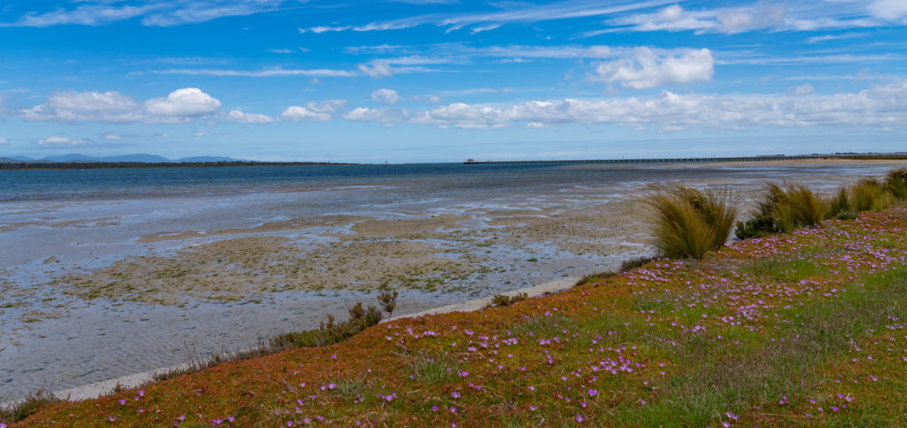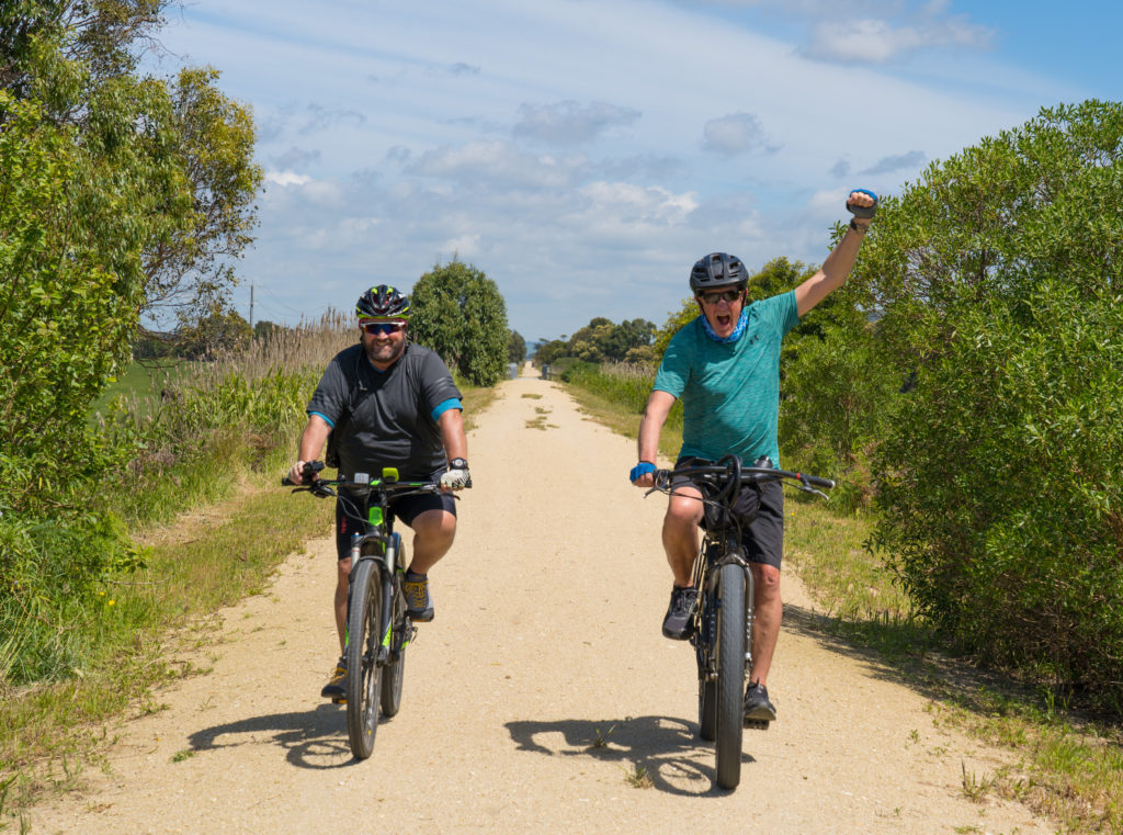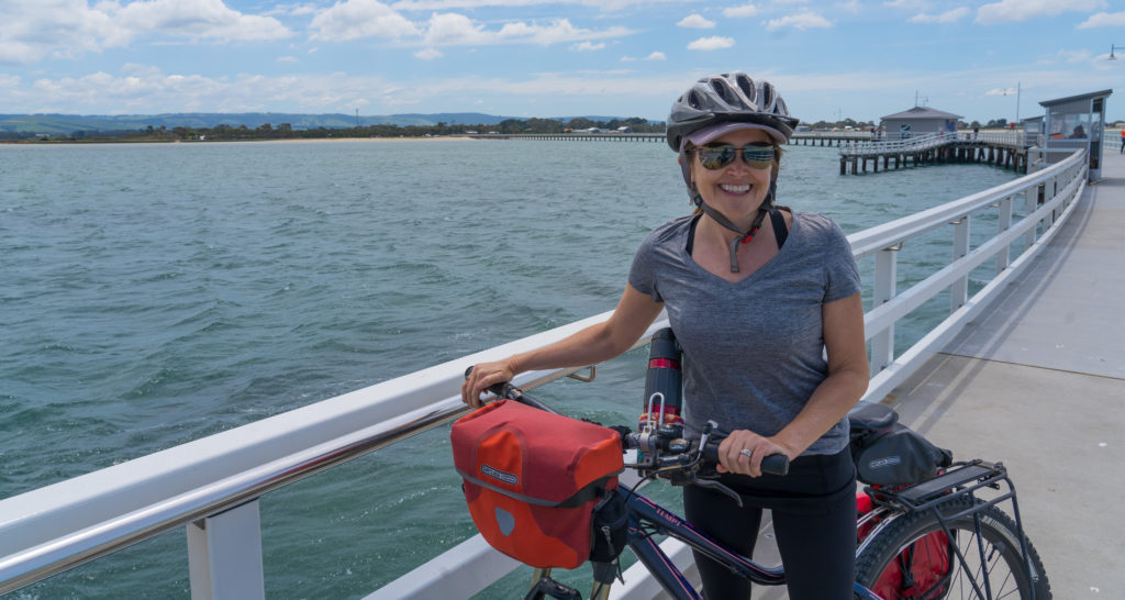 Welshpool has a long jetty stretching 850 metres out to sea (the third longest wooden jetty in Australia apparently). It has been restored and improved in the past 12 months, reopened just before Christmas last year. We rode out to the end of the jetty, once out there fully able to appreciate the gale force winds that had picked up as the day progressed. It didn’t bode well for our return cycle, with the full strength coming from the direction we were headed. Where are our eBikes when we need them?!