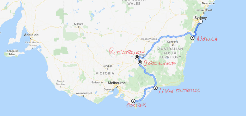 Friday: We farewelled our friends and headed south, aiming for the town of Foster, inland from Wilsons Promontory, south east of Melbourne.