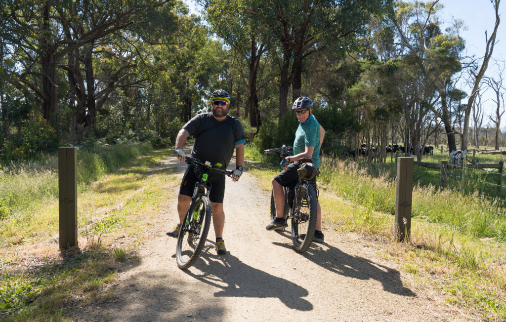 The scenery was quite lovely as the trail took us through woodland, past wetlands and fields of cattle, all framed by rolling green hills. Rosellas, galahs, lorikeets, honeyeaters and wrens were among the multitude of birds accompanying us on our ride.After a morning tea break in Toora, we continued on to Welshpool and from there down to Port Welshpool. Locally caught fish and chips was our reward for lunch.