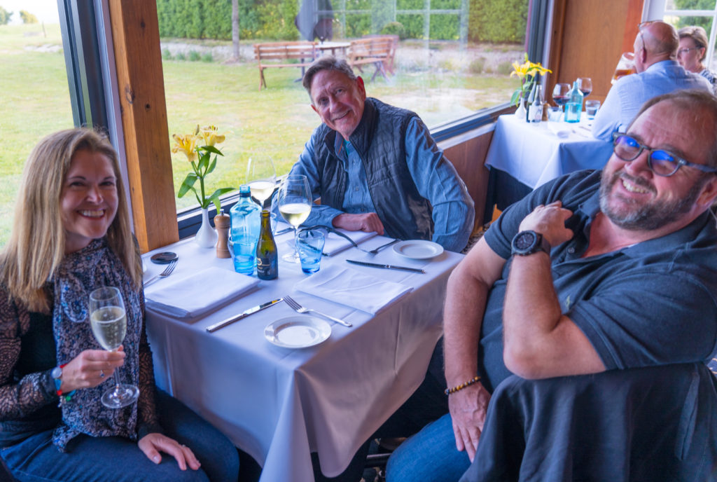 A lovely venue with an eagle’s-eye view was accompanied by a brilliant menu featuring locally produced meats, fish and vegetable and Victorian wines. As a new winery the vines are not yet producing enough grapes to produce a vintage, but the wine list did not disappoint.