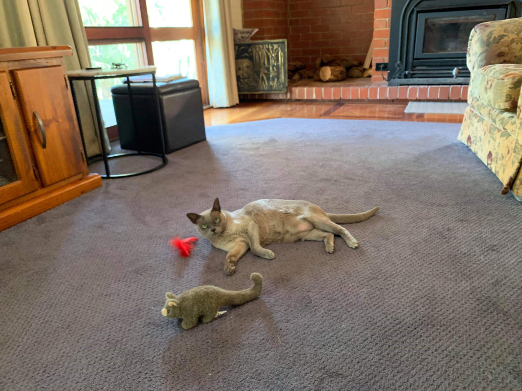 Thursday: Hot temperatures blew into Victoria, taking our pleasant days in the early 20°Cs up to a very steamy high of 41°C (that’s an increase from about 70 to 106 in fahrenheit for those working in old measurements). This was coupled by strong winds which whipped up the dry earth and covered everything in a thin layer of orange dust. Definitely not a day to be outdoors. We were very grateful for the ability to hibernate in Mark and Diane’s house with its refreshing air conditioning, Tassie in particular pleased to have a run about in a house.