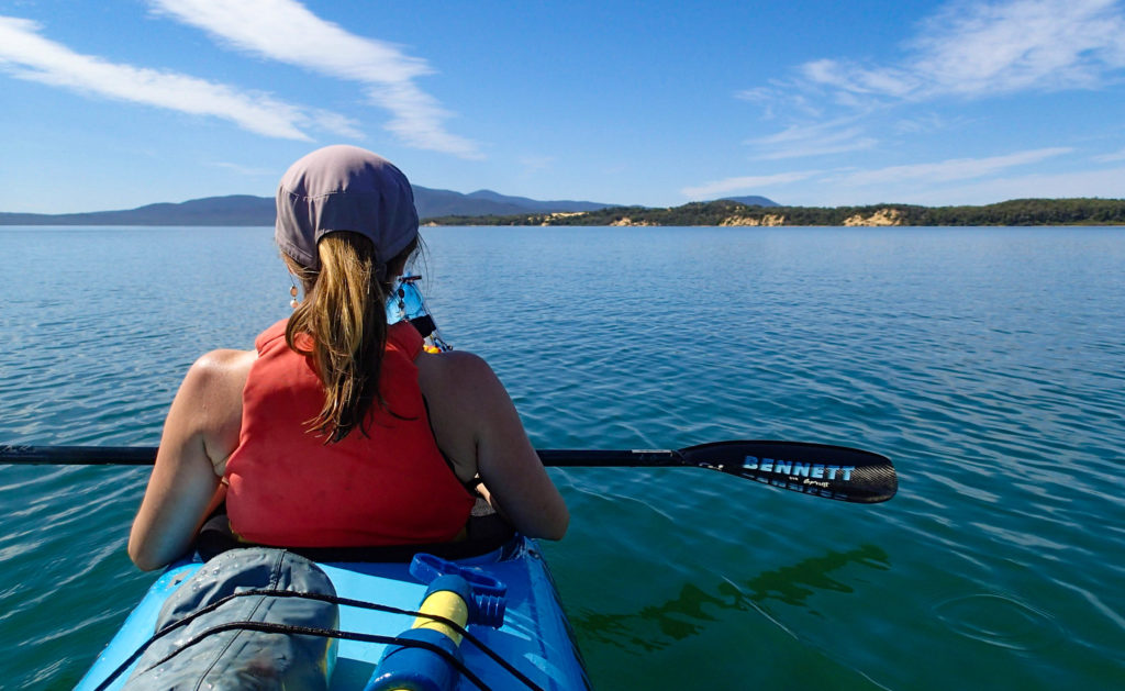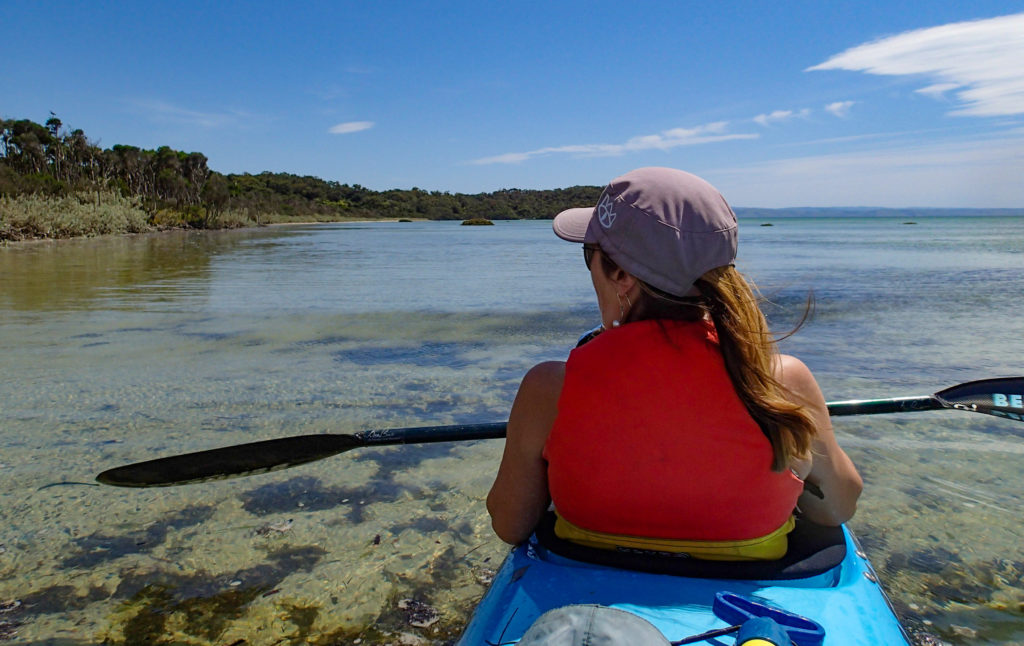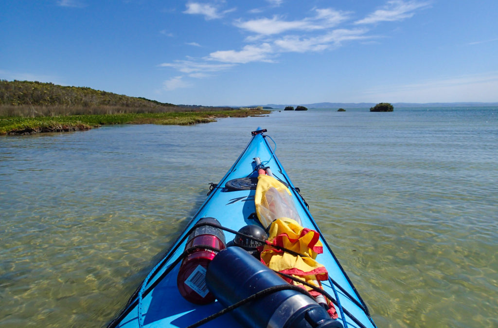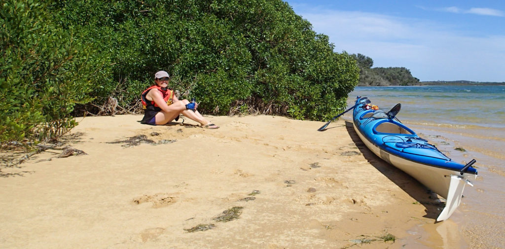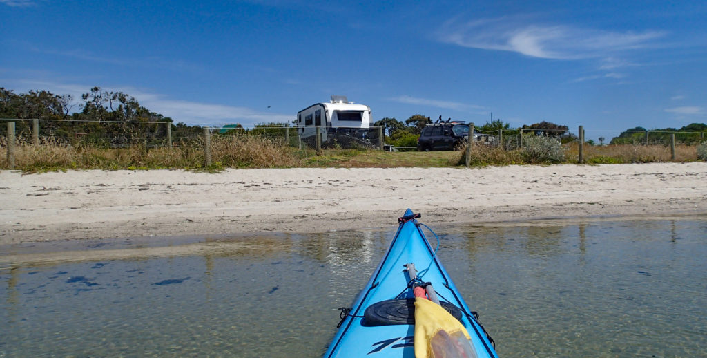 We headed out in the kayak, batting across the mill-pond like surface of the bay (Corner Inlet for those in the know) heading for a sliver of beach in the distance.