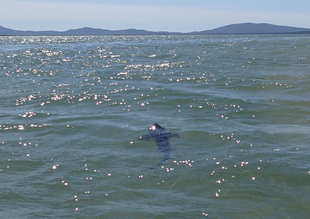 We later learned it is in fact a great white shark nursery, and we did in fact spot this little fellow (officially called a shark pup) struggling along.