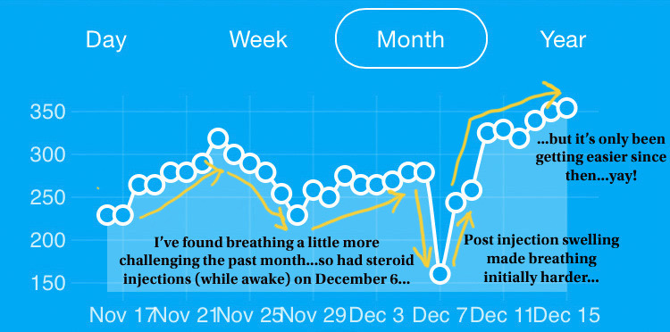 A week last Friday I had heard disappointing news about my airway. A visit to my local ENT surgeon found the scar tissue has returned again, closing my trachea by about 40%. Definitely not news I wanted to hear. He injected some steroids into my neck, a treatment aimed at shrinking the tissue – regular readers will know I have had a few of these procedures now, so I was hopeful it might work. Well, I don’t want to talk too soon, but so far so good – even in spite of the continued smoke, I am breathing much easier. Our fingers are crossed it stays that way over the coming weeks.