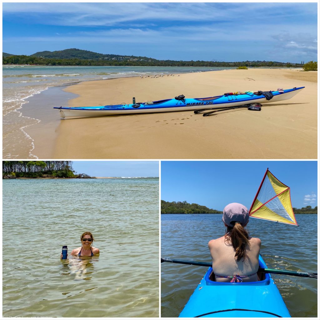 During the days, Mark and I made use of being surrounded by water to get out on the kayak, exploring the river and lake, investigating some of the sand islands and inlets in the Noosa River mouth. The water really is the best place to be at this time of year, with the humidity at 70% and upwards with days over 30 degrees centigrade.
