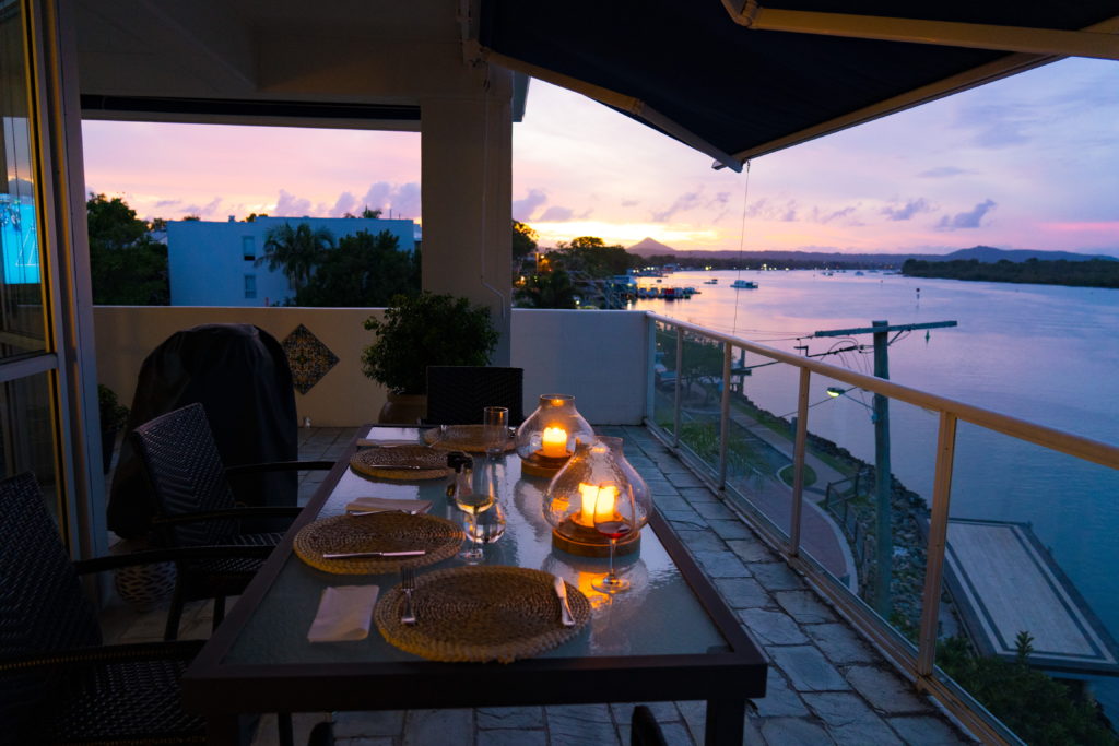 Our friends are about to trade in their waterfront apartment for one with broader sweeping views of lake, river and bush, so we made the most of the Noosa River views for the last time. Their landlord has put the apartment up for sale in all its original 1970s glory. It needs substantial renovations and upgrading – the owner wants a couple of million dollars for it, if you have some spare cash…