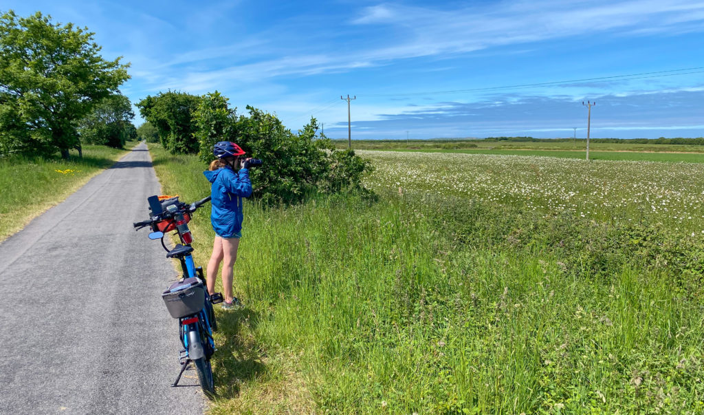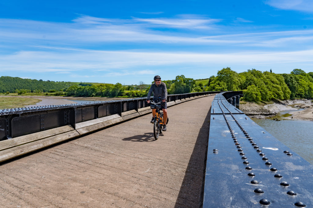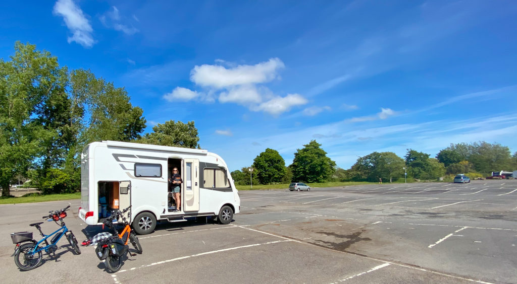 It was time to swap our boots for our bikes, and I had read about a cycle trail running through the coastal town of Barnstaple. The Tarka Trail (named after the 1927 novel, Tarka the Otter, set in north Devon) is over 200 kilometres of traffic-free path, the longest in the UK, and all running along old railway lines. Off we set, for our longest drive (at 90 minutes) since mid March. It felt like quite an adventure! We had read horror stories about the traffic on the coast, but this day it was empty, as was the car park, apart from the mobile virus testing station being run from a big army truck.