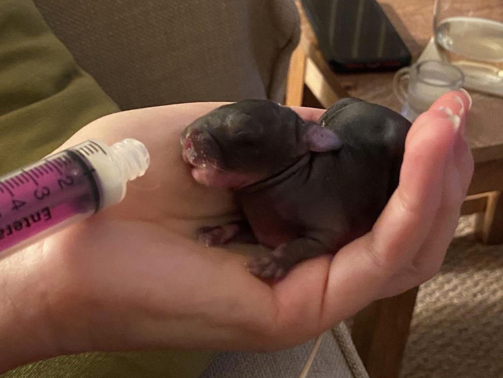 She had noticed it lying on the road, just having been narrowly missed by a car and covered with gravel. Its little eyes were still closed it was so young, maybe a day old. Perhaps the victim of that fox we saw, or a buzzard? Catherine was straight on to her sister, who worked at the RSPCA, and armed with advice put a message out onto the local village chart group. A few minutes later a kindly neighbour has offered her a heat pad and syringe to try and get some nourishment into her. All we have is oak milk, but she takes it and seems to settle down in the cosy little warm nest we have made.