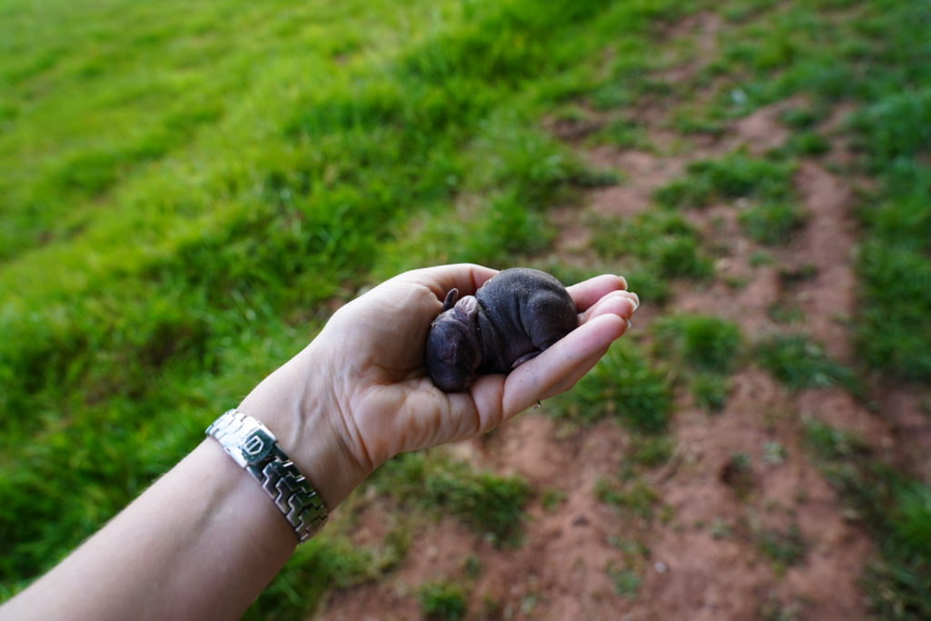 The only interruption to our serene regime comes when Catherine is out on a walk and arrives back carrying the tiniest baby rabbit (apparently called a kit).