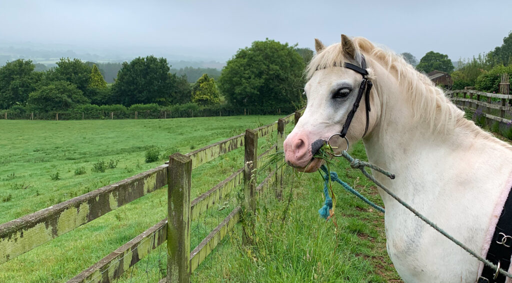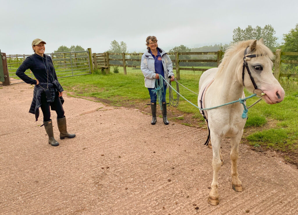 During a break in the wet weather we had an impromptu visit from two of the friends we have made here, Karen and Jane Ayre who run the caravan park down the road. During lockdown they have been training a young pony, Vinnie, which will eventually be sold to a family for a young child to learn to ride. He’s quite small and very gentle, and even Mr A (who has a fear of horses) was brave enough to give him a stroke.