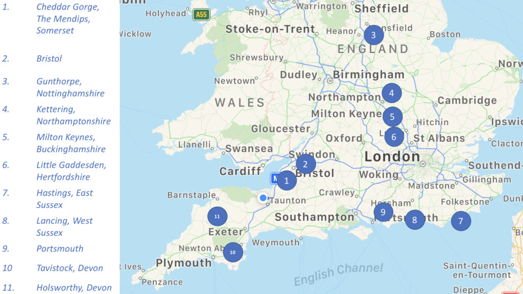 Location: Watchet, West Bagborough, Dulverton, Somerset & Putsborough, Devon, UK