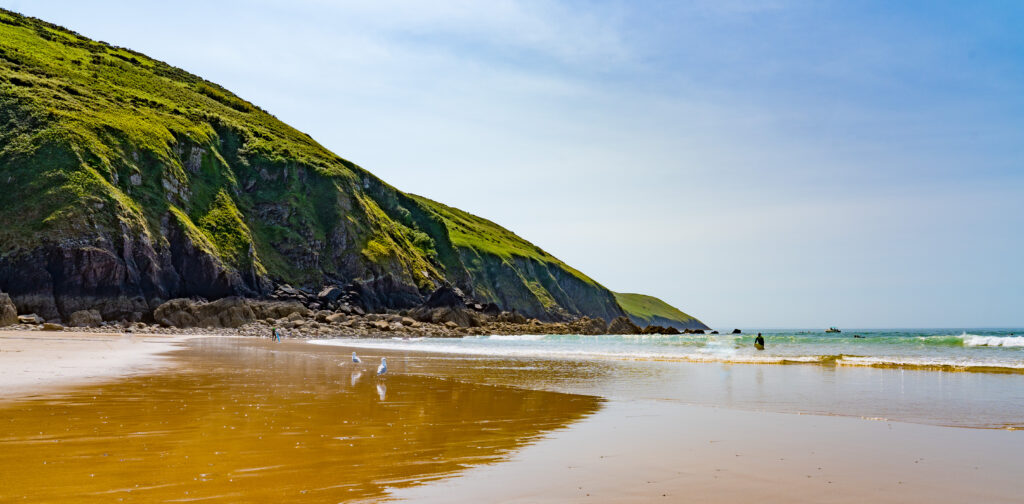 I left Mr A on a bench with the bikes and went for a stroll across the sands and a paddle in the water. It is a perfect beach for children with warm rock pools and soft sand of the ideal consistency for sandcastles. The water wasn’t that cold considering we are in the UK (though I didn’t go in for a swim – the water is between 15-19°C!).