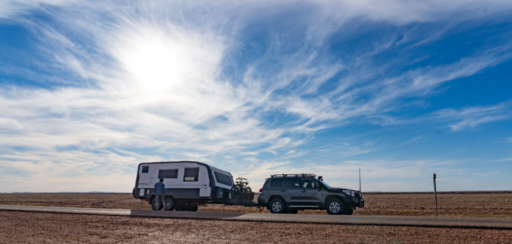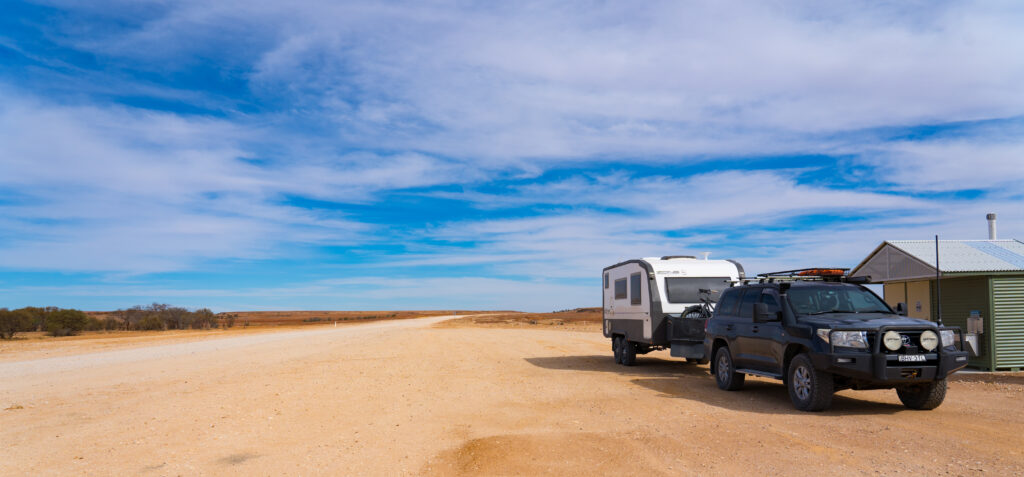 We actually passed through Windorah and Cooper Creek when we very first started our big trip – four years ago in 2017! We reflected on how much more comfortable we are now travelling, feeling less stress towing and parking up. We have learned a lot in that time.