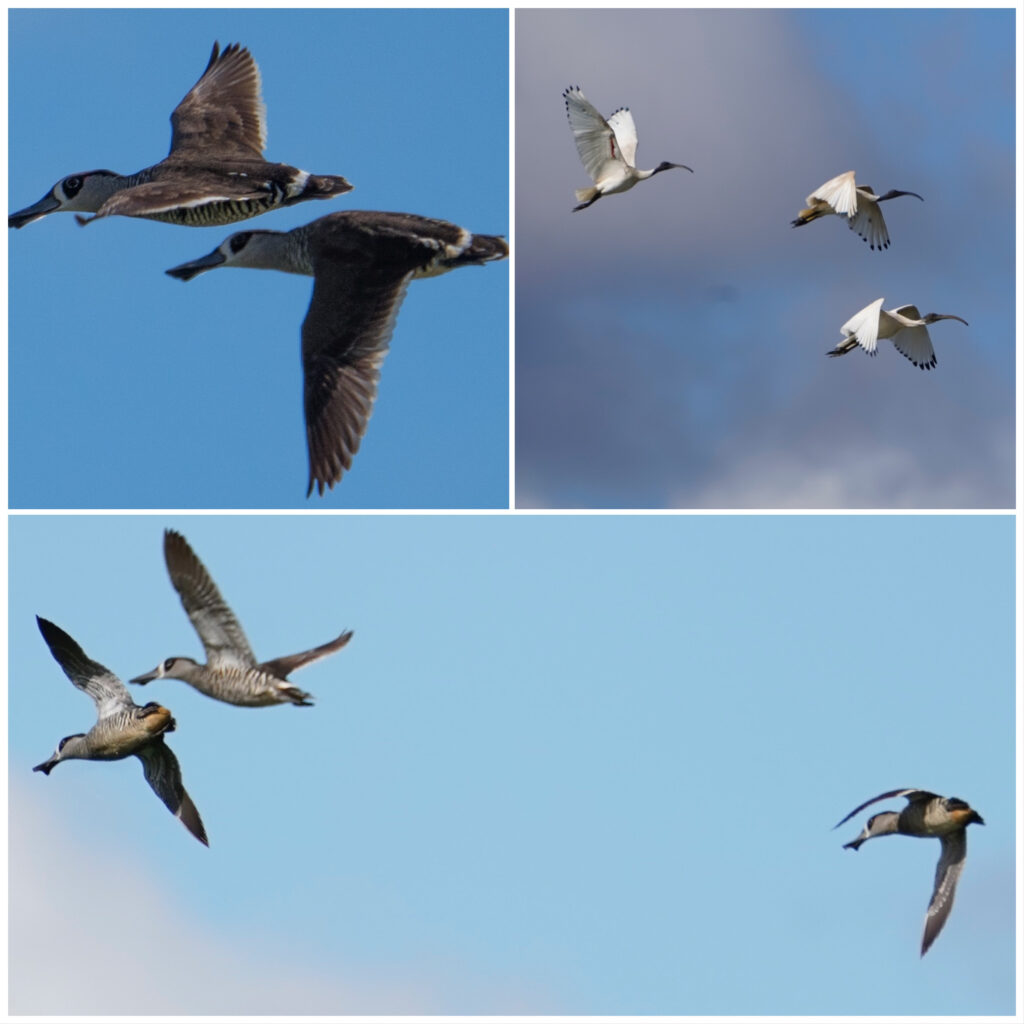 The birds were quite skittery, clearly not used to seeing people. A large flock of zebra-patterned ducks took flight as we arrived. We later learned these are Pink-eared ducks (if you get close enough, you can see they have pink ears just behind their eye), and live only in Australia. Ibis (commonly seen with their long beaks in city rubbish bins!) were here too, as well as Pied Stilts, Spoonbills, Pacific Black and Grey Teal ducks. We had a good look around before leaving them back in peace.
