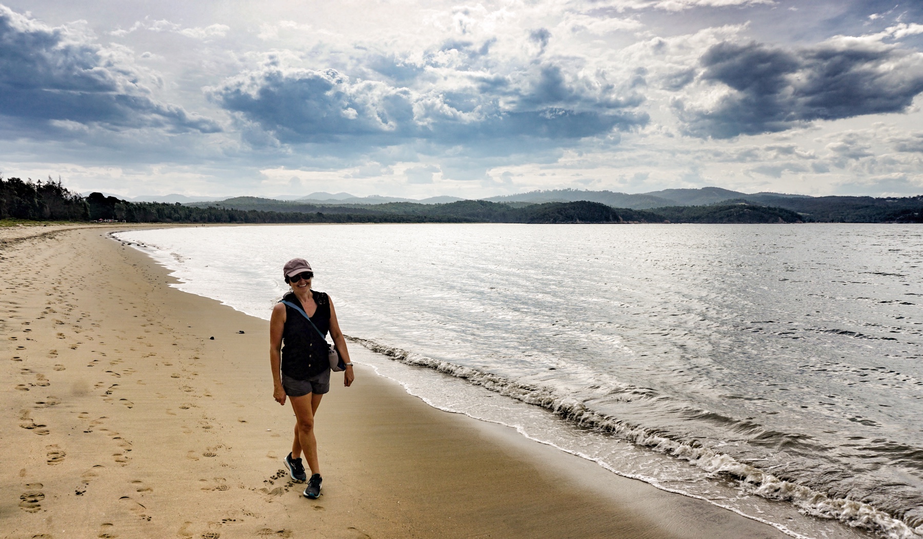We set up camp in the spacious grounds, and headed off for a walk on the beach. The cloud was rolling in, threatening rain, but very little fell after all.