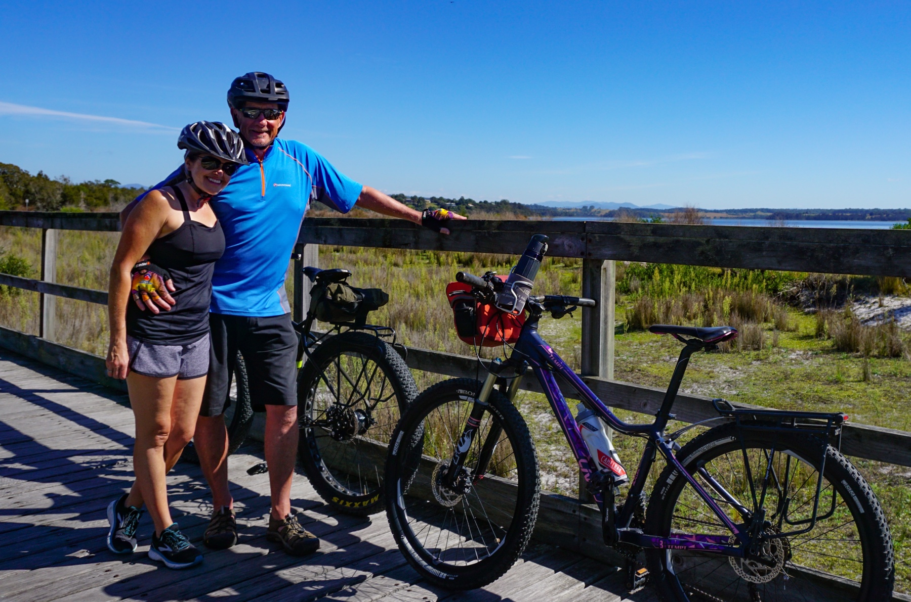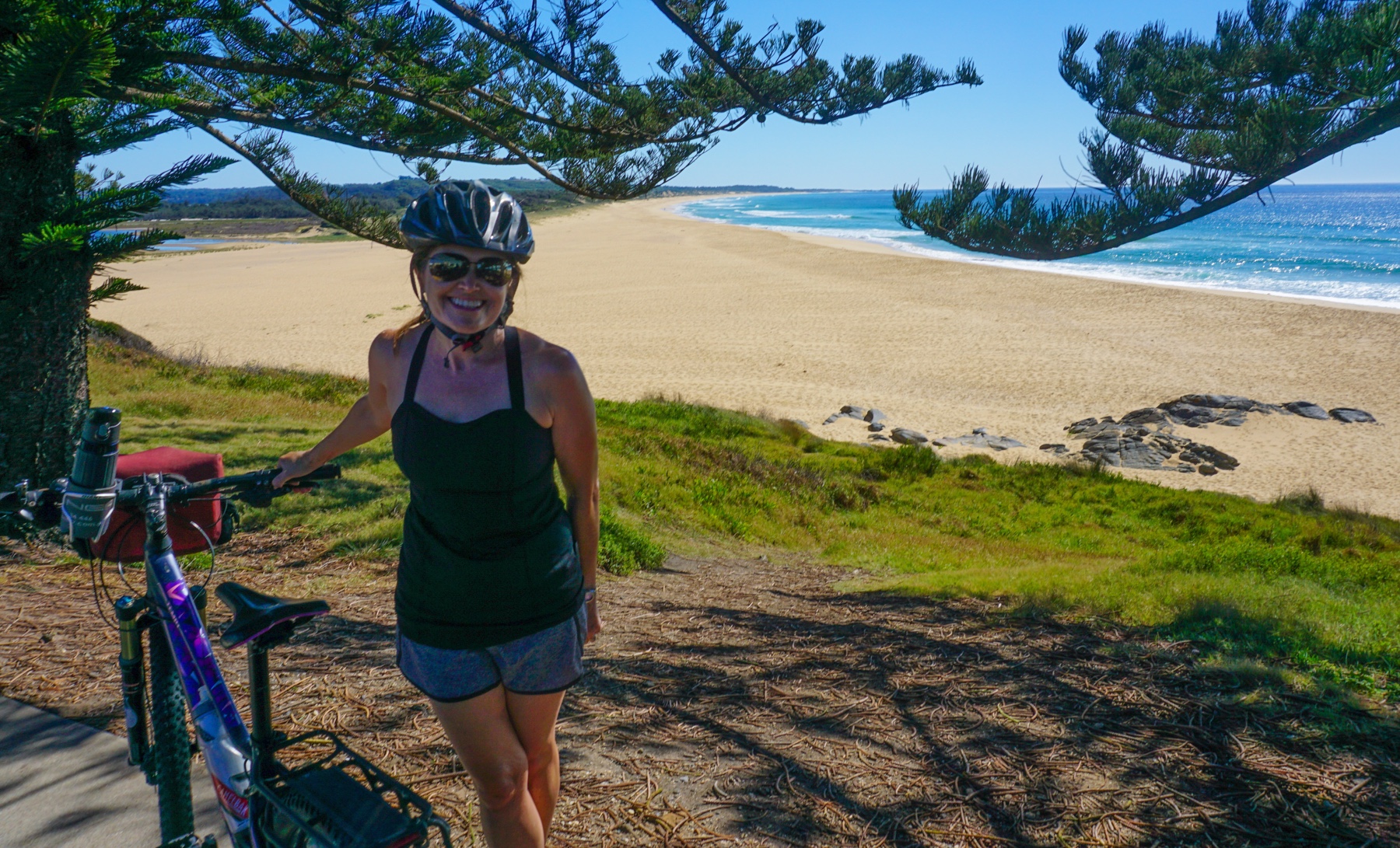 After a lot of car time the past couple of days we were determined to get out and explore under our own power, and did a 13km cycle around the coast, following the pathway around to Coila Creek and back.