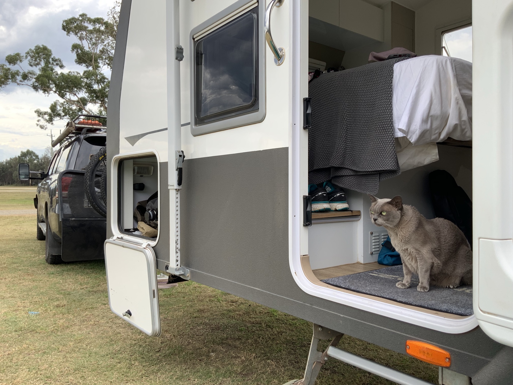 Yesterday was a real washout, it absolutely poured all day, so it was bunker down and zone out in the Zone. Never a problem given the comforts we have! With weather like that it reaffirms our decision to leave behind the canvas of our camper trailer and go caravanning. This morning though I had the dubious pleasure of packing up camp in the continuing drizzly rain, while Mrs A does the indoor stuff. Our division of labour to remind readers is as follows: Mrs A: chief cook and head of travel research. Mr A: dirty, tall and unskilled labouring. It seems to work for us.