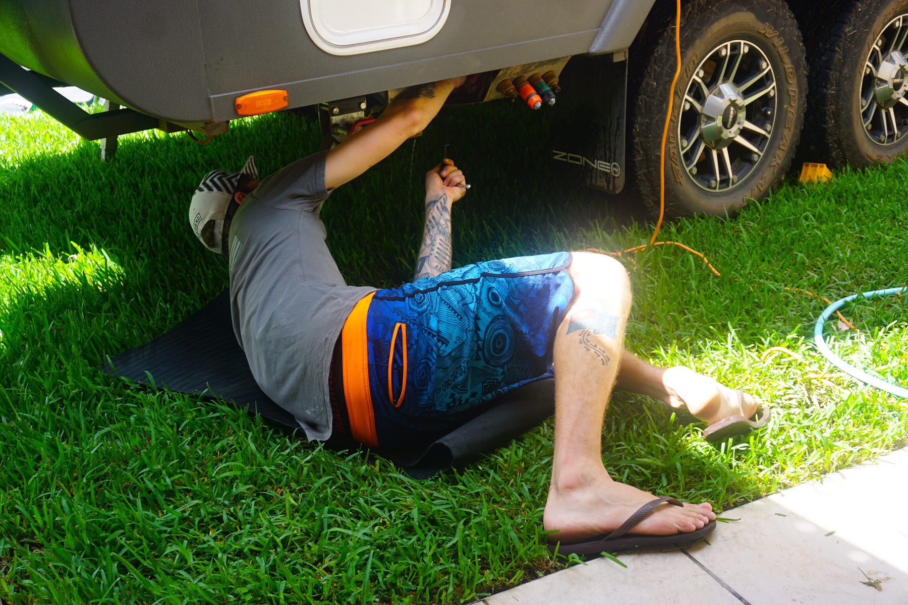 Mid morning, ZoneRV employee extraordinare Rhys drove up after his night out in Brisbane to take a look at our water system. What service to come out on a public holiday!