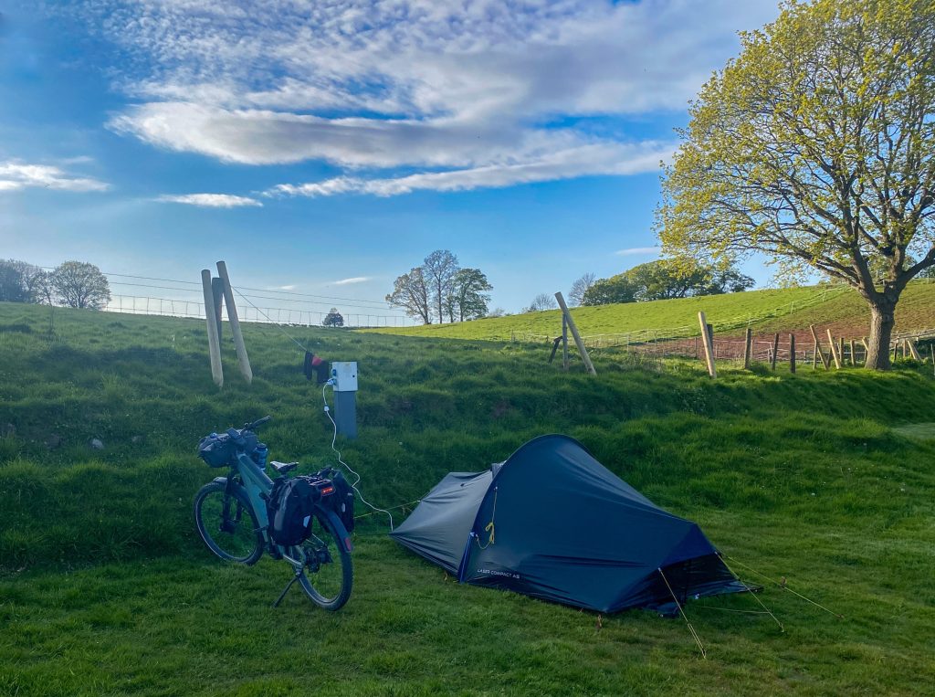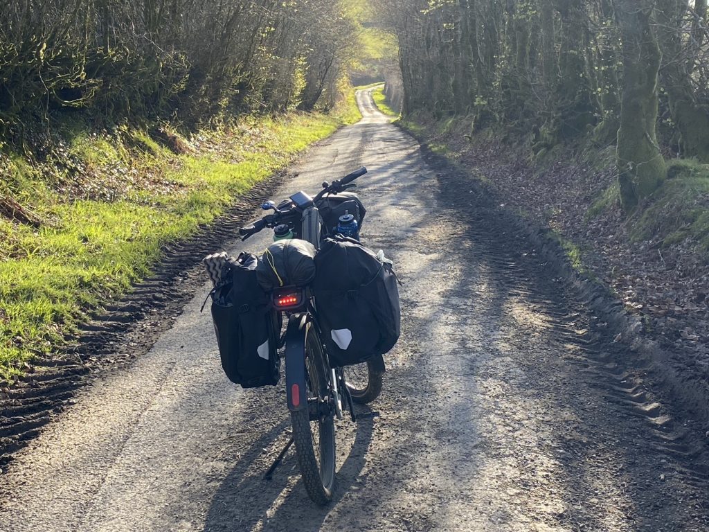 As Catherine was away, I headed for the hills in the company of Brutus. No jumping to conclusions please, he’s my (admittedly very handsome) electric bike. Loaded up with camping gear he was looking especially beefy.