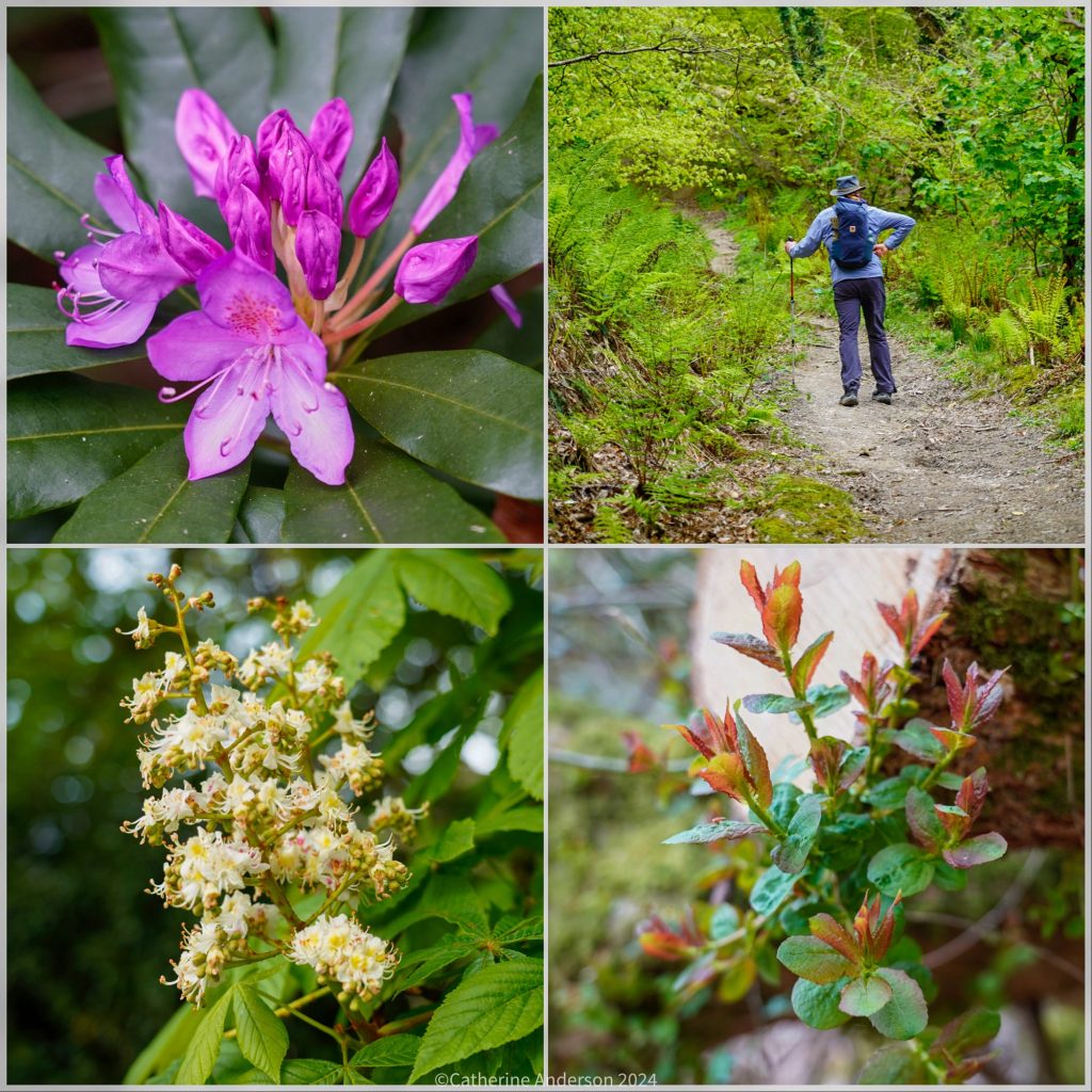 The Grampus Inn – a very cosy pub, with parts of the building dating back to the 14th Century when it was part of a working farmRhododendron and sweet chestnut flowers brightening up our climb back out of the valley